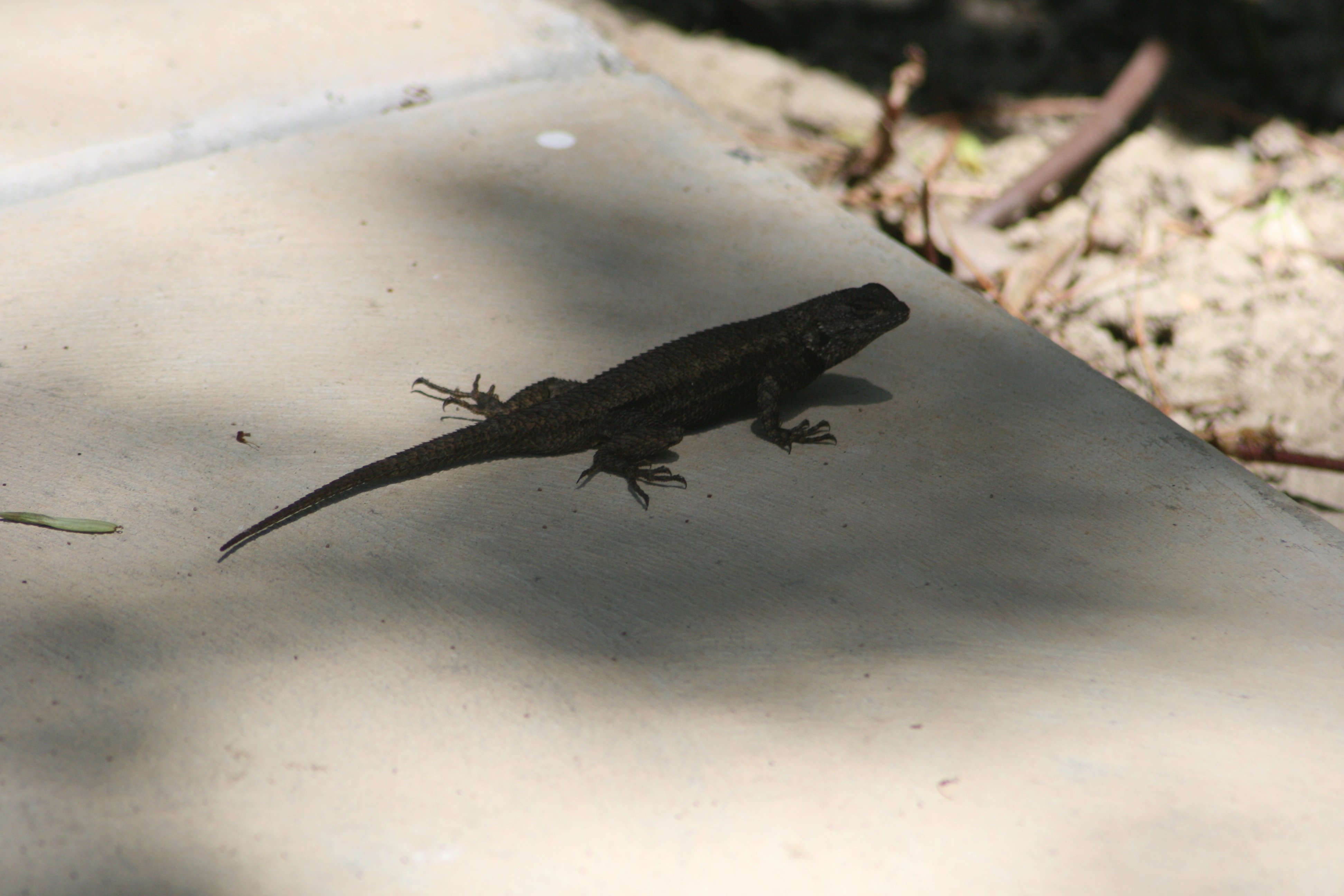 It didn’t take too long to realize that there are lizards in the yard here at the new yard as well. Today was sunny and hot, so I got out the camera with the big lens (these lizards are a bit skittish, won’t let me get as close as the Freds did, but then again, the Freds knew that something was up as we were moving out) and did a quick survey of the back yard.