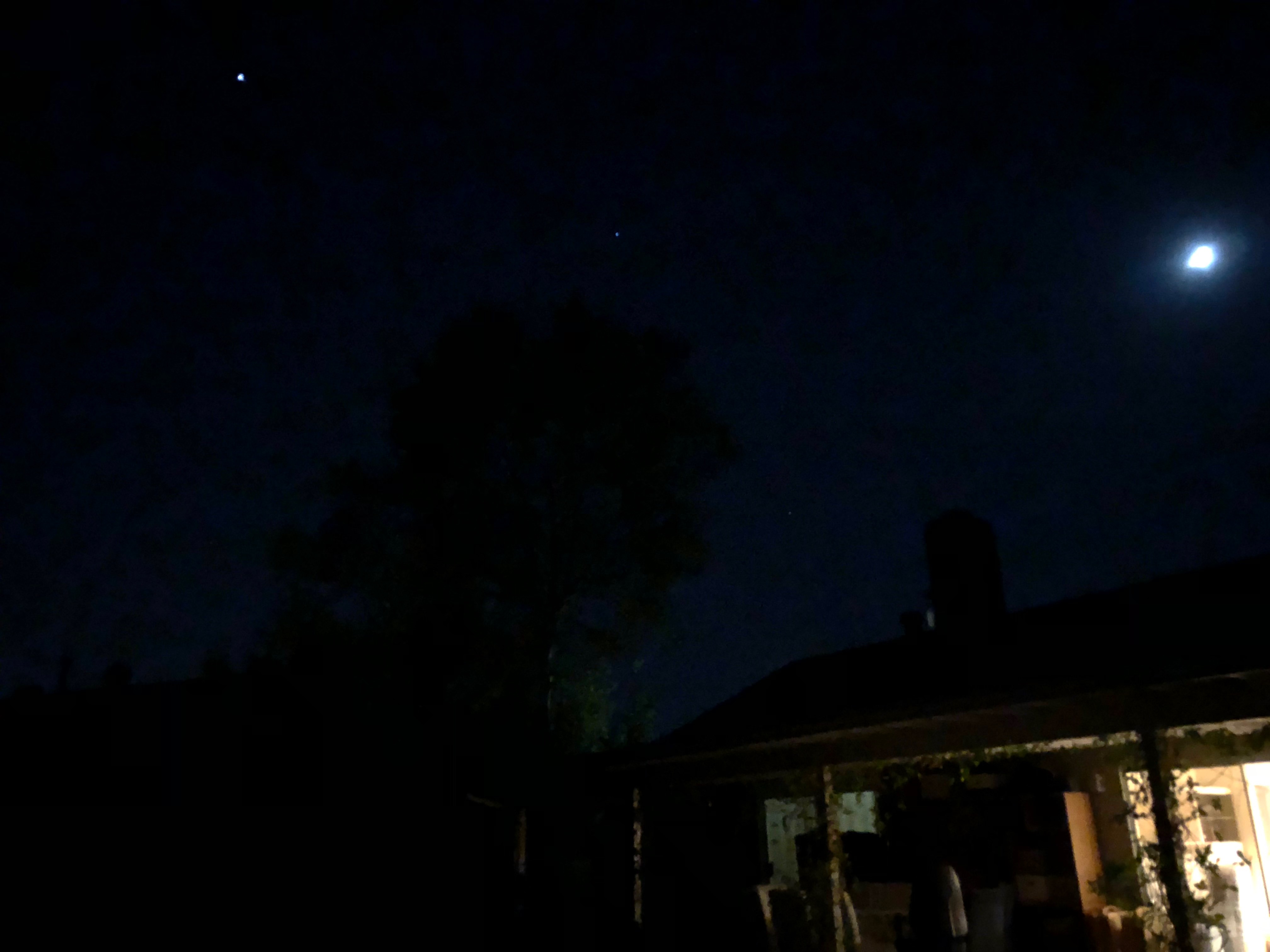 Even with just my cellphone, Jupiter’s nice and bright and of course any camera will pick out that nice first quarter moon on the right. In between, even Spica can be seen.