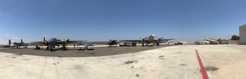 Okay, it’s not ONLY bombers and transports on the ramp – the F-24 is over there on the far left, and our F6-F Hellcat’s stashed over next to China Doll.