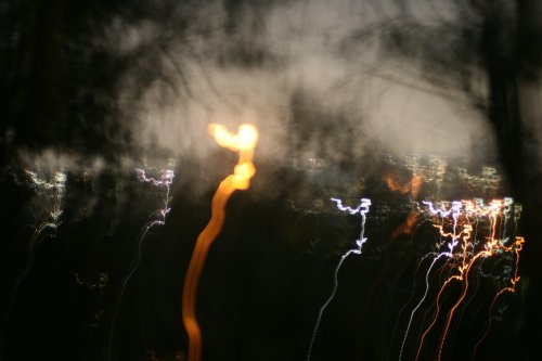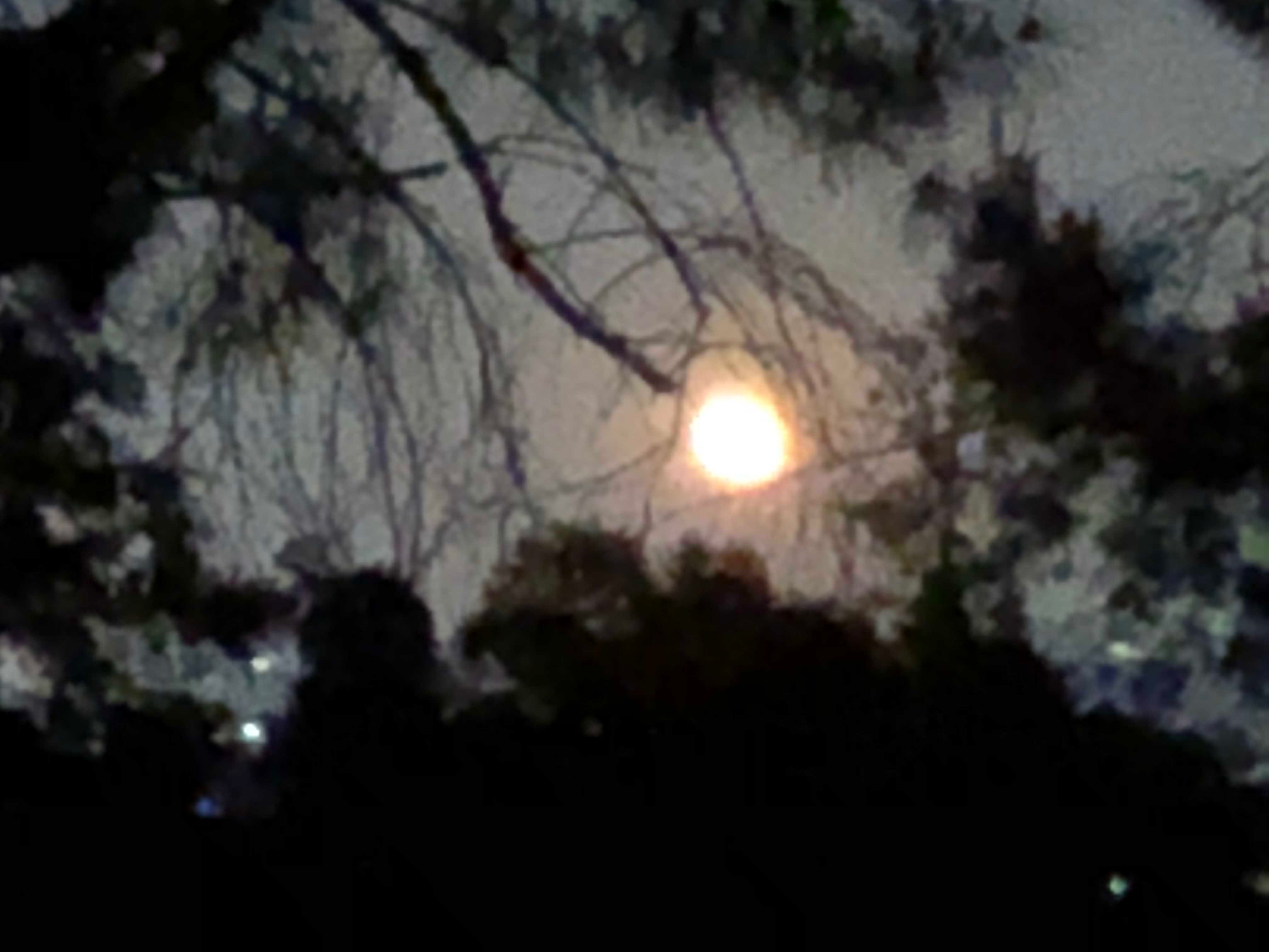 What the good camera did give, with the long exposure and the lack of a tripod, was some interesting effects. Here the trail of the moon actually is a pretty good representation of the color.