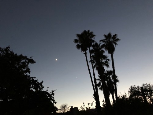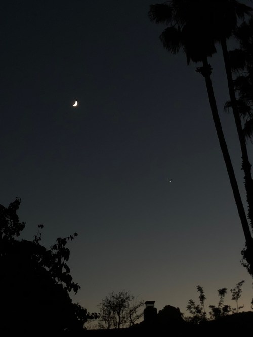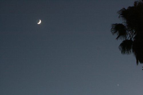 Two days ago the moon was about a hand’s-width below Venus at Sunset.