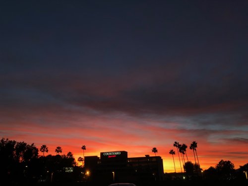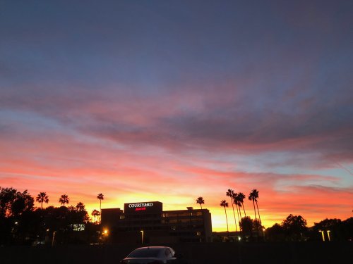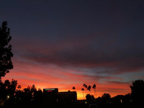 Yesterday I was up much earlier than normal to head off to a meeting and I caught the first sunrise of November. While there’s no guarantee that a glorious sunrise will be followed by an equally colorful sunset, I was delighted to find this outside as I was leaving the office about eleven hours later: