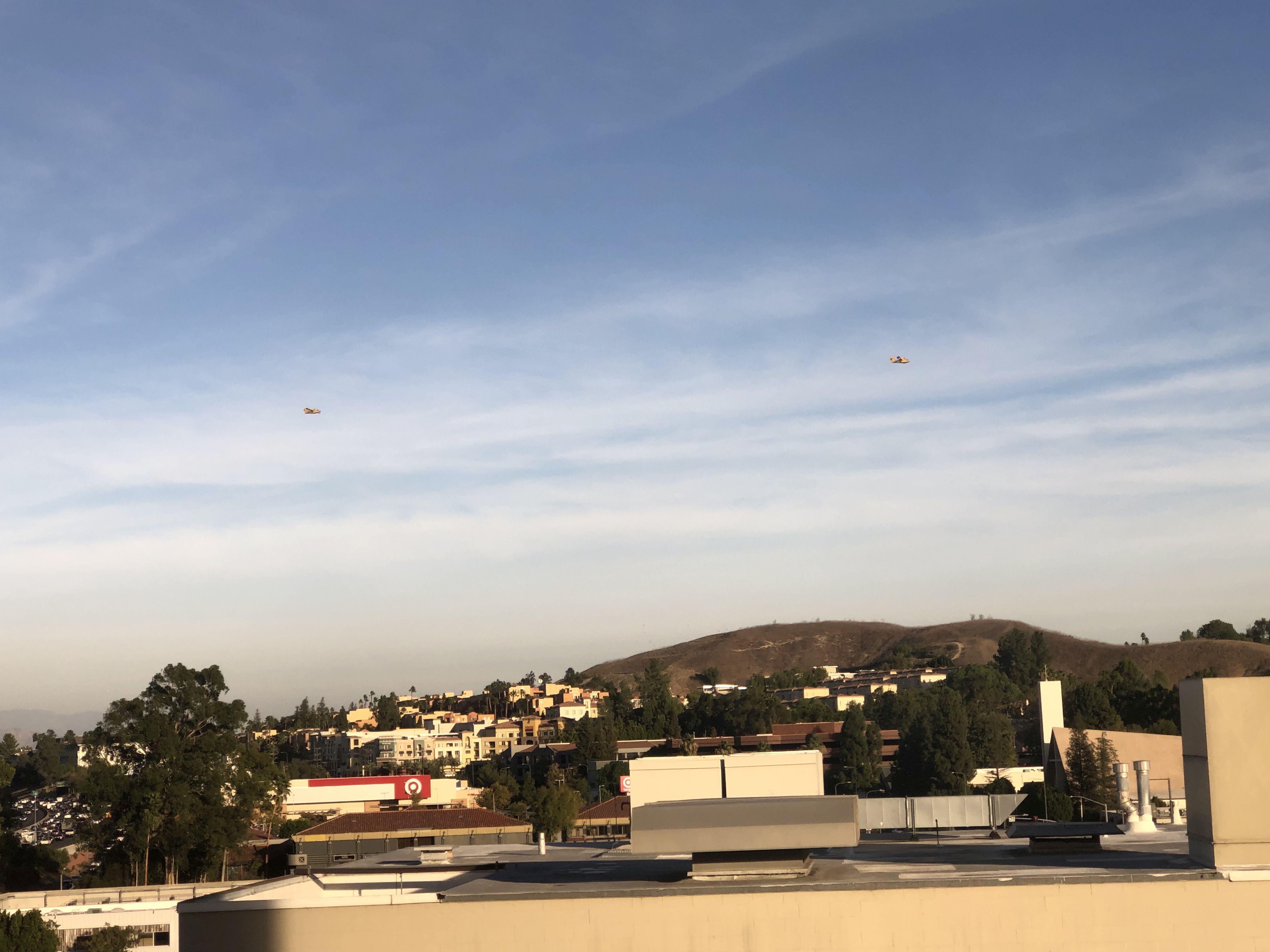 Taking off out of Van Nuys, the Canadian fire fighting water bombers are a bad sign on a dry, windy day.