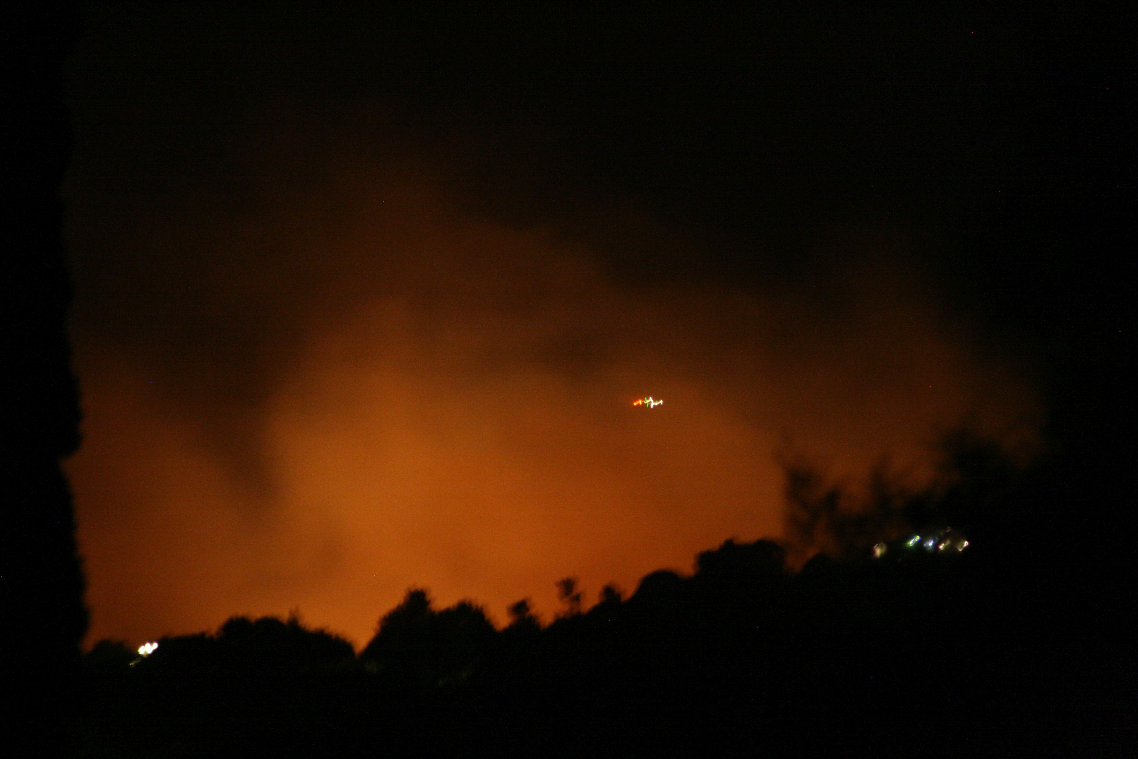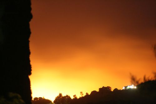 Yeah, there on the right? That’s not a third light on that pole. That’s the hill burning over past our house.