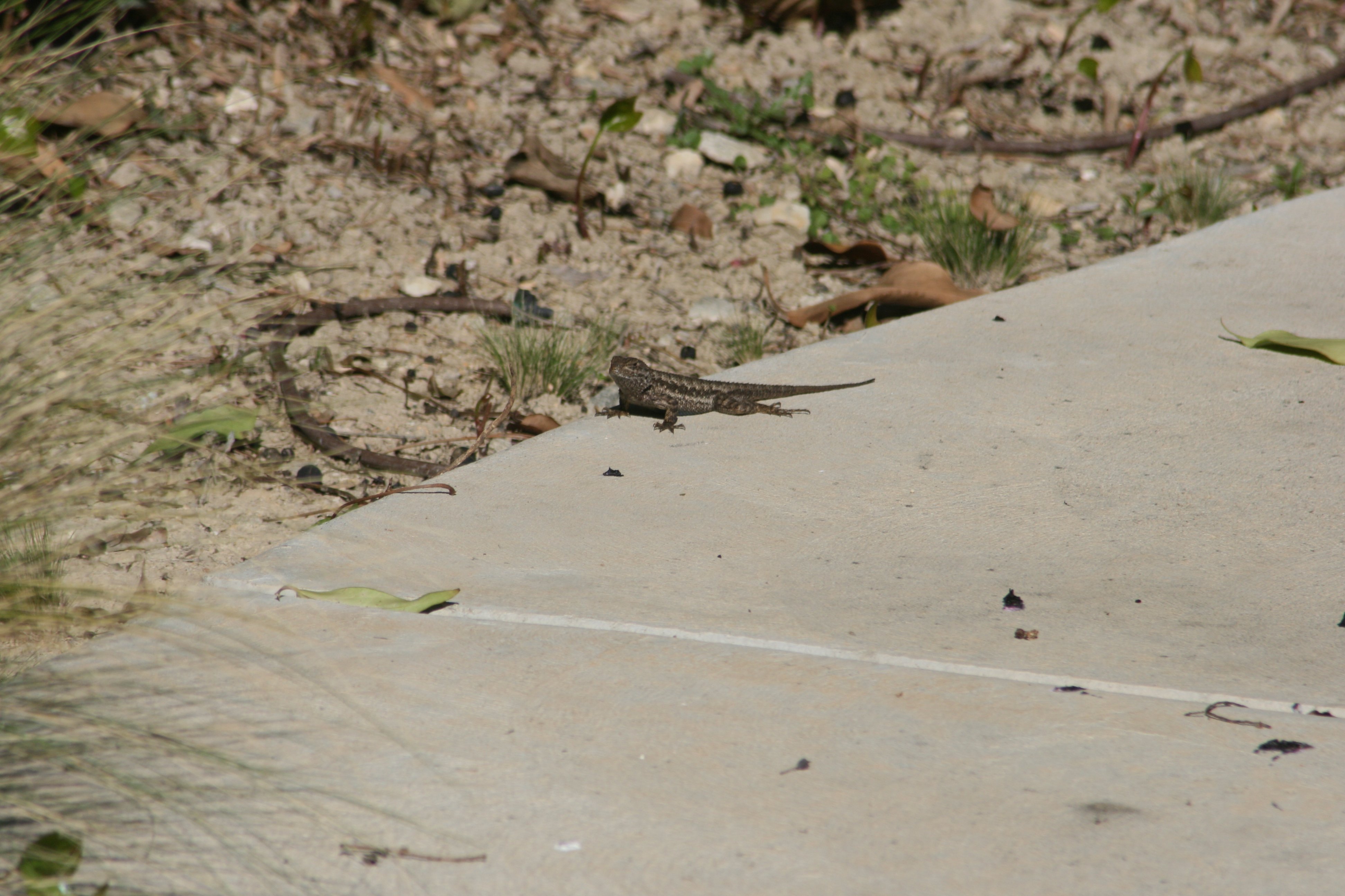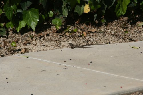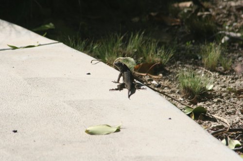 With the warmth, out came a couple of the Freds. I saw the Tree Fred from the kitchen, but he had boogied for cover by the time I went out. However, this guy was soaking up the rays on the sidewalk.