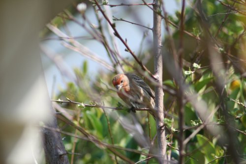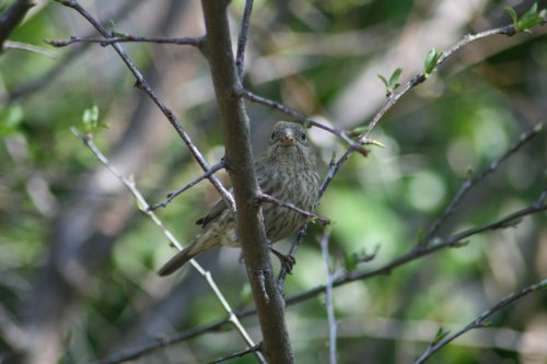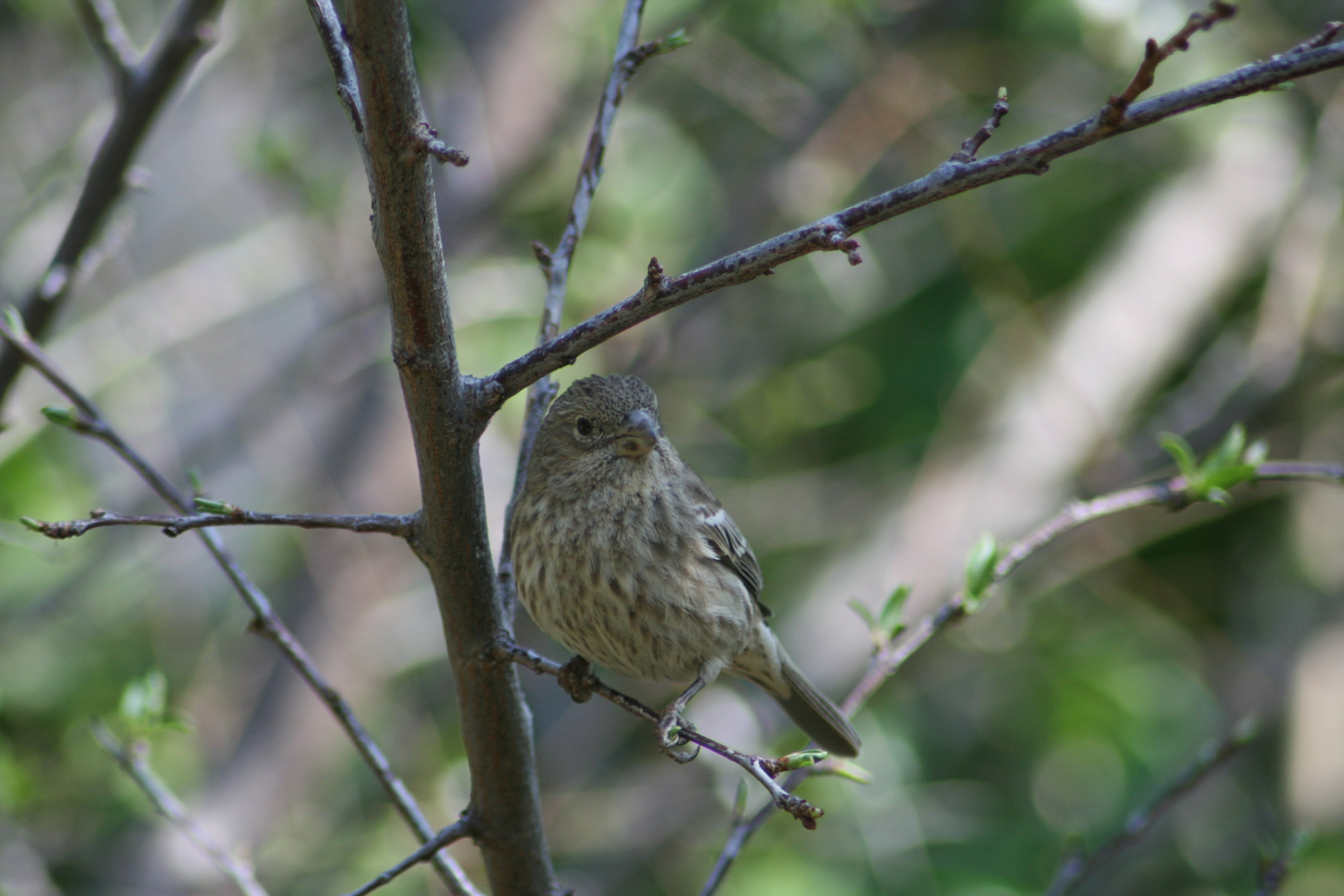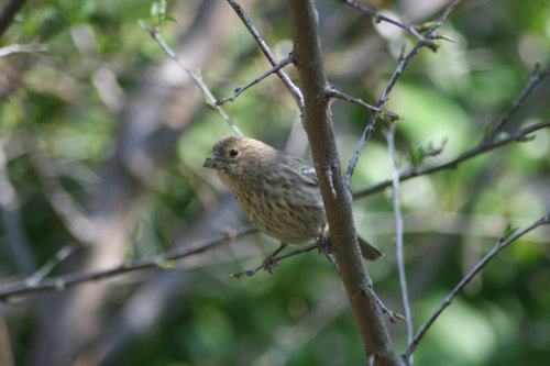 Not five feet away from the door to the porch was this lady, who was having no grief from me at all. A female house finch, very common in these areas.