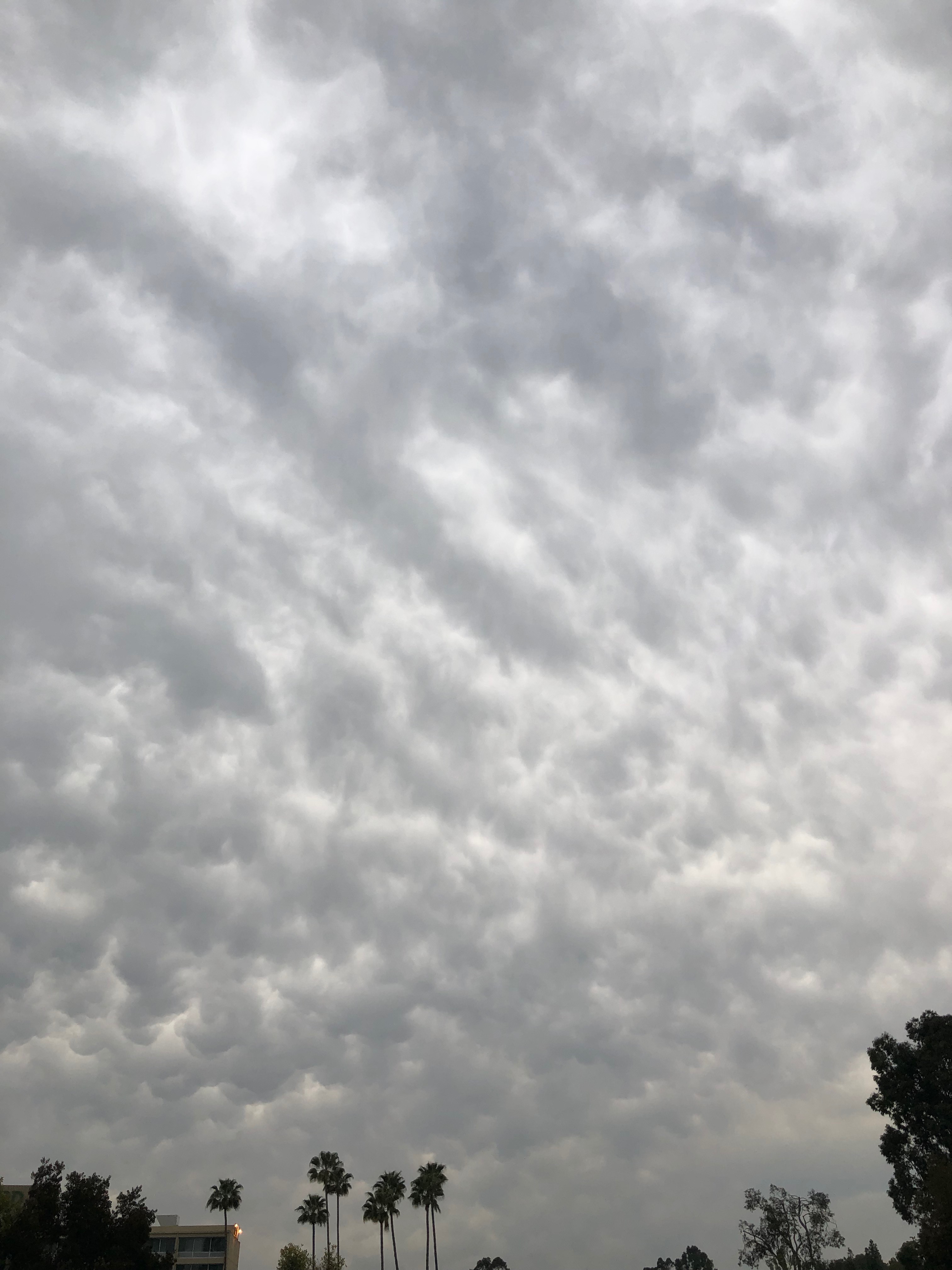 I liked the texture on the underside of this cloud layer a few days ago – not quite mammatus clouds, but there’s a bit of that sort of structure, especially in the lower left above the palm trees.