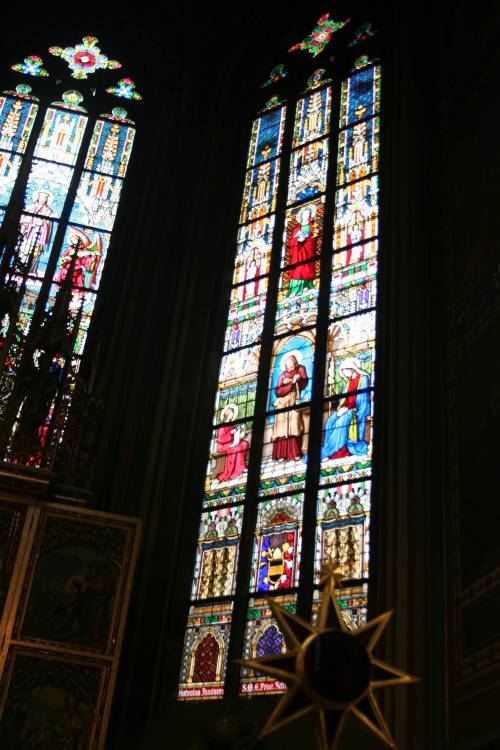 So while I can’t share pictures of Notre Dame, I can share pictures of the stained glass windows from Prague.