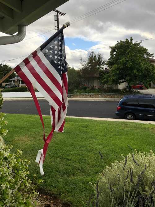 When we moved into this house a year ago (and by the way, geez louise, look back at my posts from last May, I have no clue how I survived that), we got a new flag for the front porch.