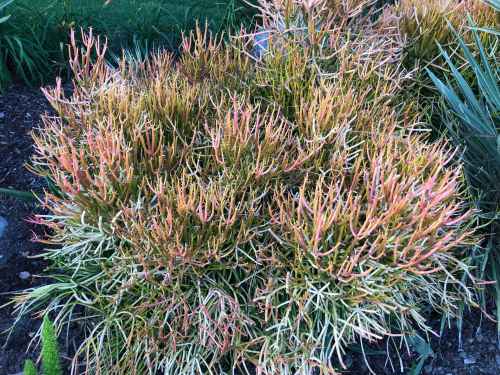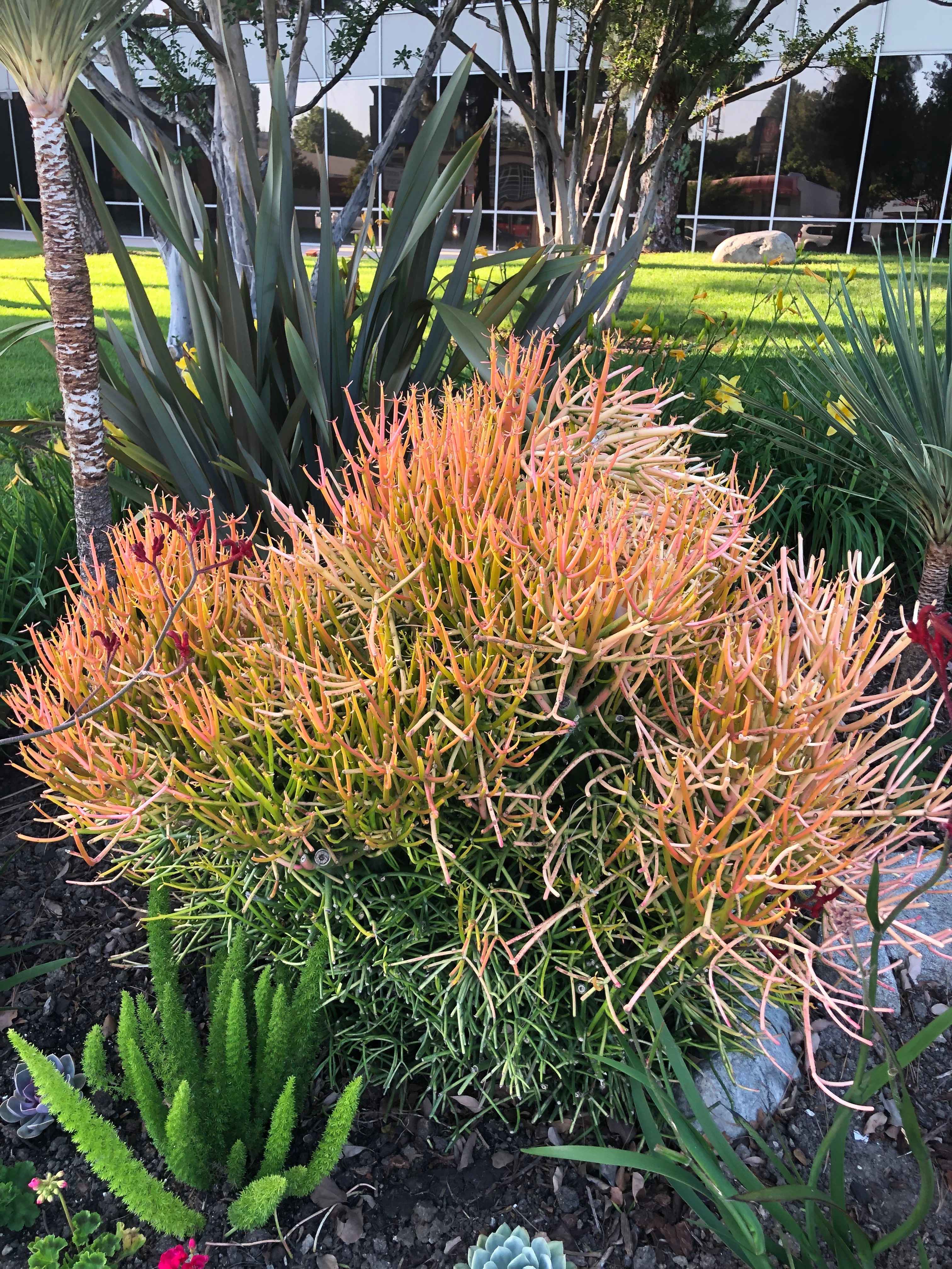 In addition to the new (at least, to me) and unusual drought resistant plants that are popping up, some have been around for a few years. These are out in front of our office building.