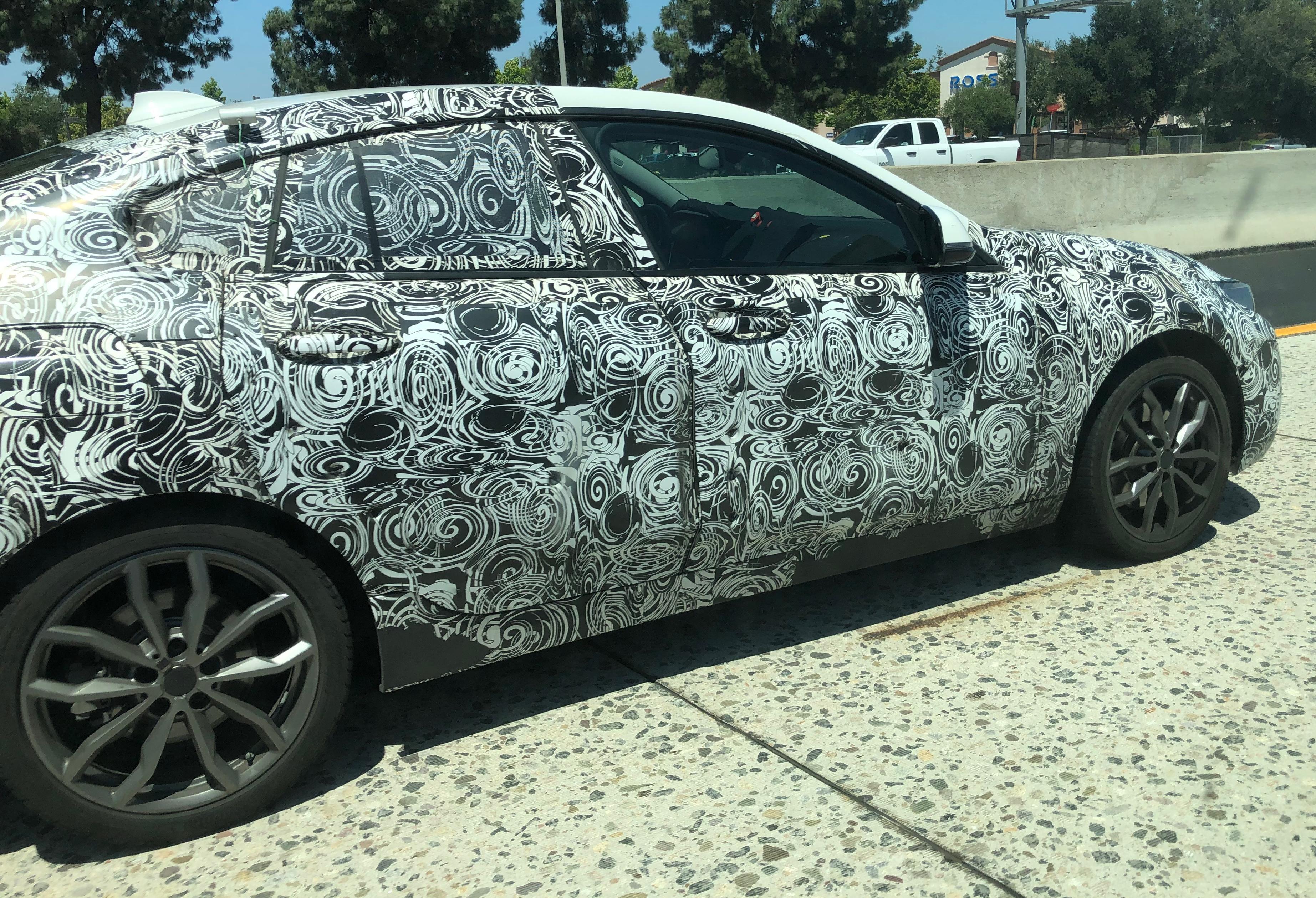 The bizarre paint scheme (actually just some sort of glued on sheets, sort of like that weird shelf paper our mothers all put in the kitchen cabinets) is designed to make it hard to discern the exact shape and contours of the vehicle. The car manufacturers need to get some real world test data, but they don’t want anyone in the real world to know what it looks like until the advertising gurus pop up with the appropriate marketing campaign, probably at some world class auto show.