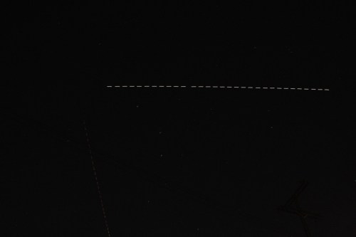 The bad – I still consistently underestimate the size of the field of view of the camera. The intent was to keep snapping photos until I was SURE that the ISS had passed out of the fixed field of view so that I would have a trail from one edge of the frame to the other. Obviously I stopped too soon, probably by 25-30 seconds. (These are one-second exposures.)