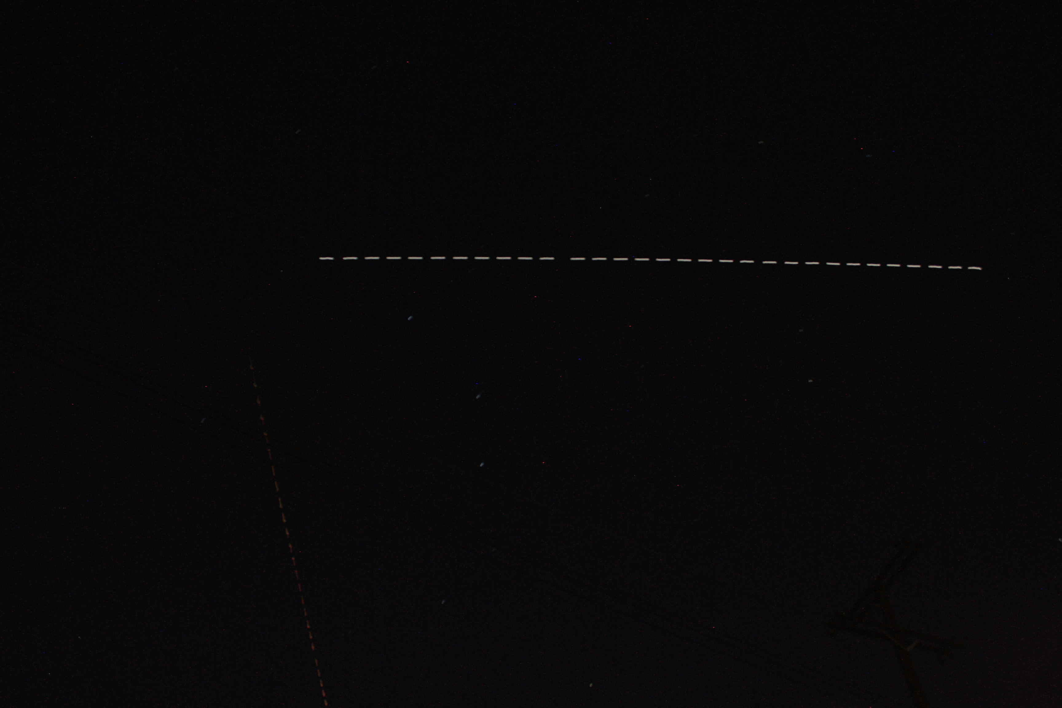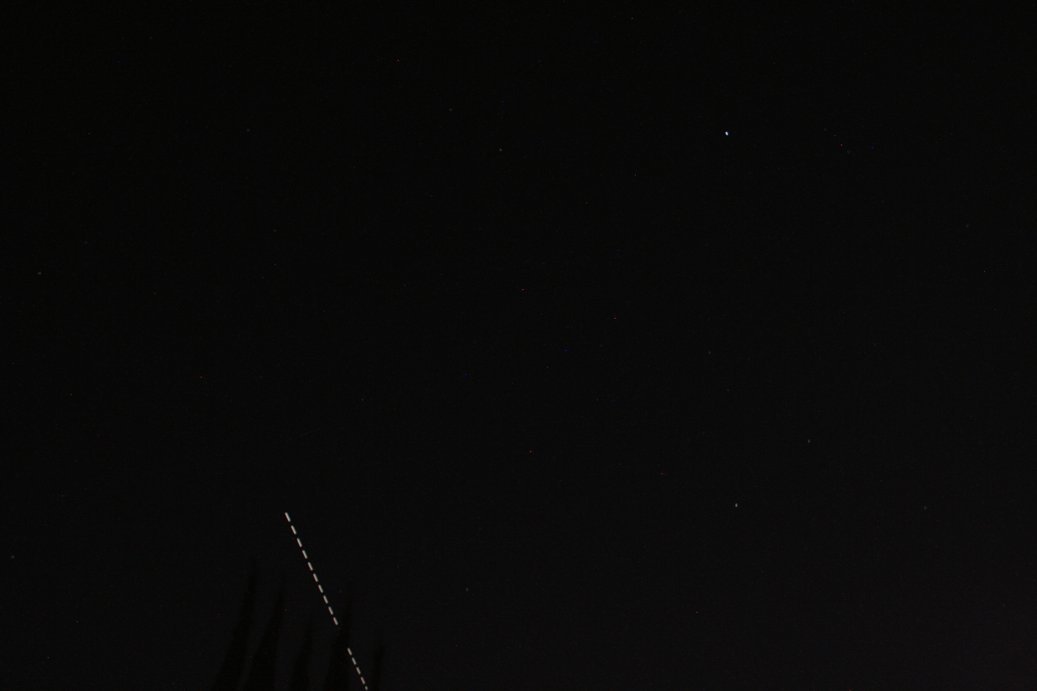 Passing almost straight overhead, again I badly misjudged how big the frame is. But just below the start of the trail (ISS was moving from left to right, SW to NE) you can see the Big Dipper hanging down.