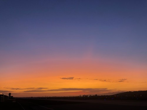 Coming down the Camarillo Grade on the 101 northbound (by which I mean “due west”) out of Thousand Oaks there was a sunset that was a couple of steps above average. By the time I got to the hangar and parked it had faded, but it still didn’t suck.