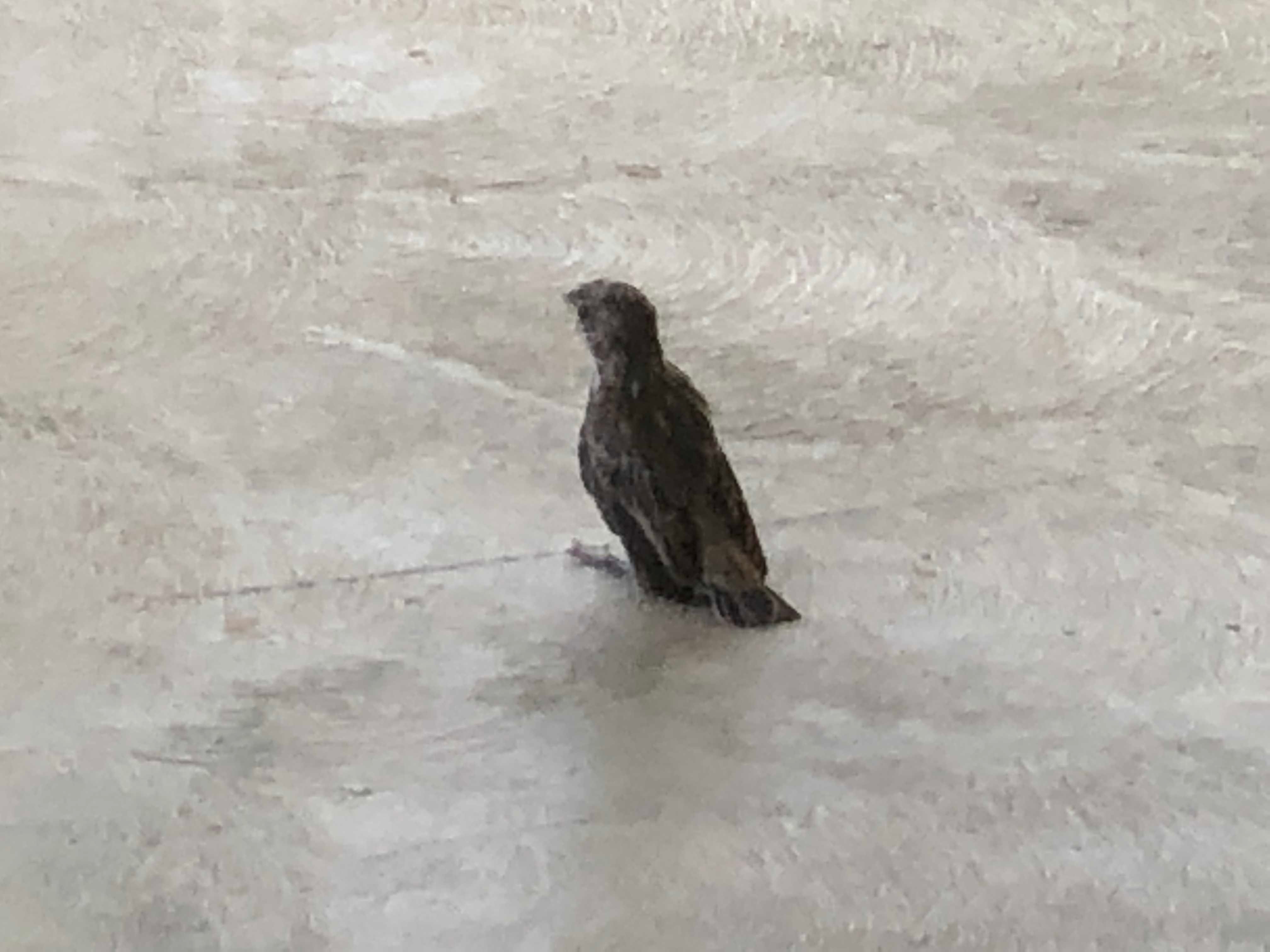 We put out some water and bread crumbs. We never saw this little guy partaking, but the mockingbirds and a squirrel were grateful.