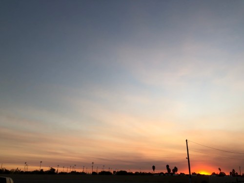 I came out of the hangar on my way home at just the perfect time. The sun was just hovering on the horizon, blood red through layer after layer of smoke.