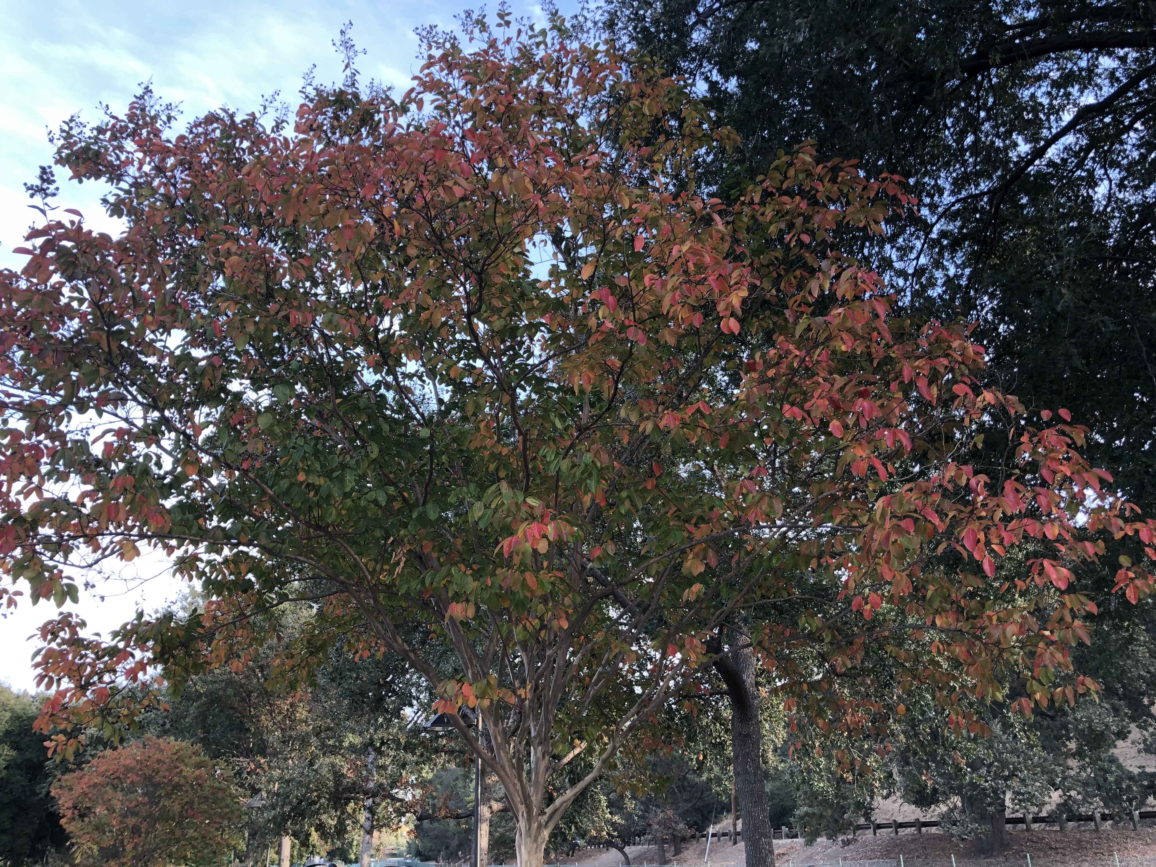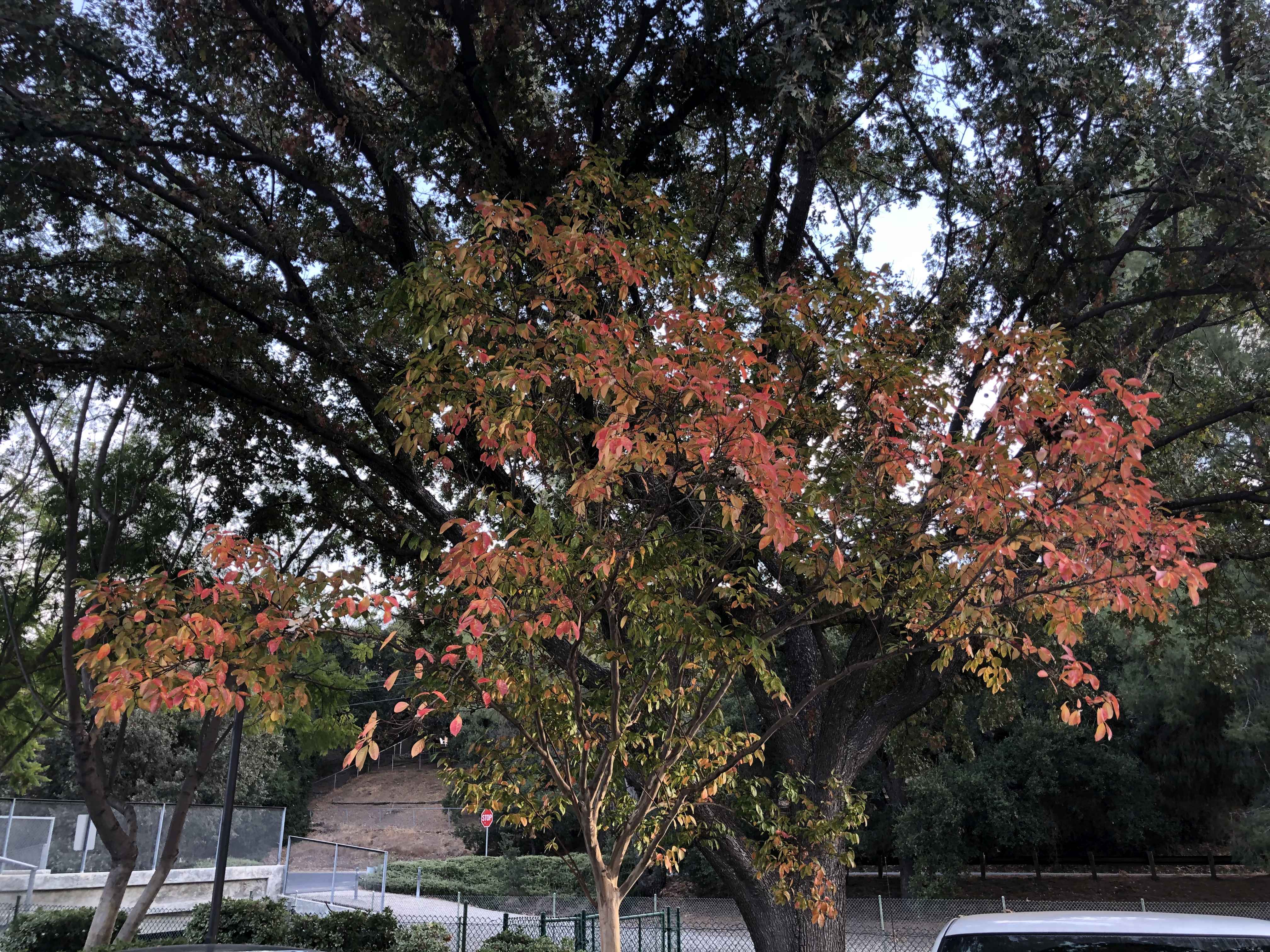 This afternoon some of the trees on the back side of the building were trying for some oranges and reds.
