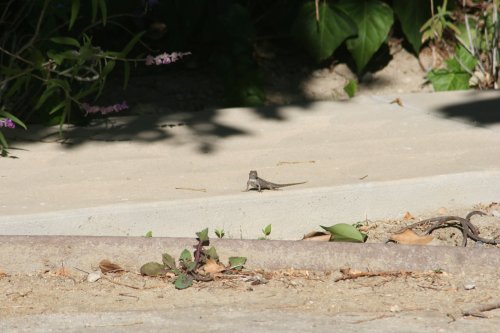 I went out into the back yard (it was about 89°F – sorry to my friends in the sub-freezing climes) and spooked a lizard.