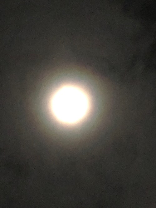 Between the cold, the moon, and the layers of icy, high level clouds, there was the most amazing colored 360° moonbow surrounding the moon overhead.