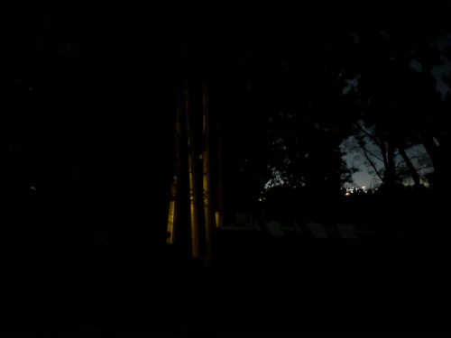 Those are the wind chimes that were banging away, with the trees in the background swaying and swishing and whooshing and generally making lots of very loud, spooky noises.