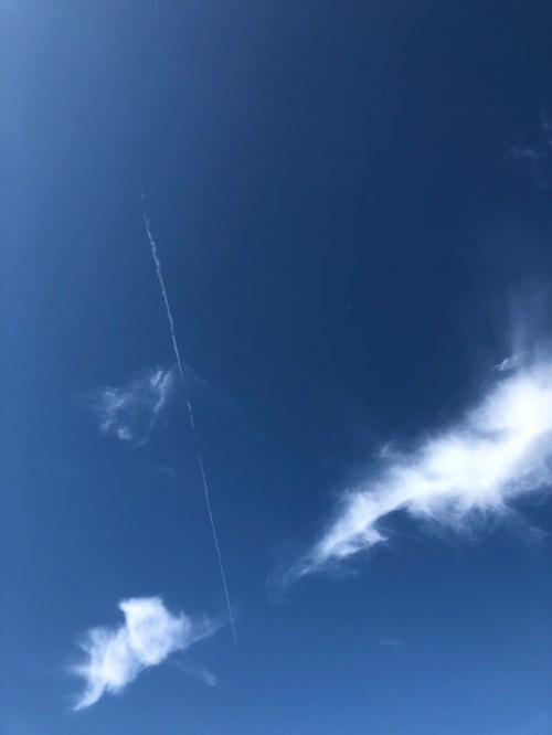 At one point when we were sending up the PBJ, I went out and noticed this long, thin contrail cutting through the few light, whispy, thinly scattered clouds.