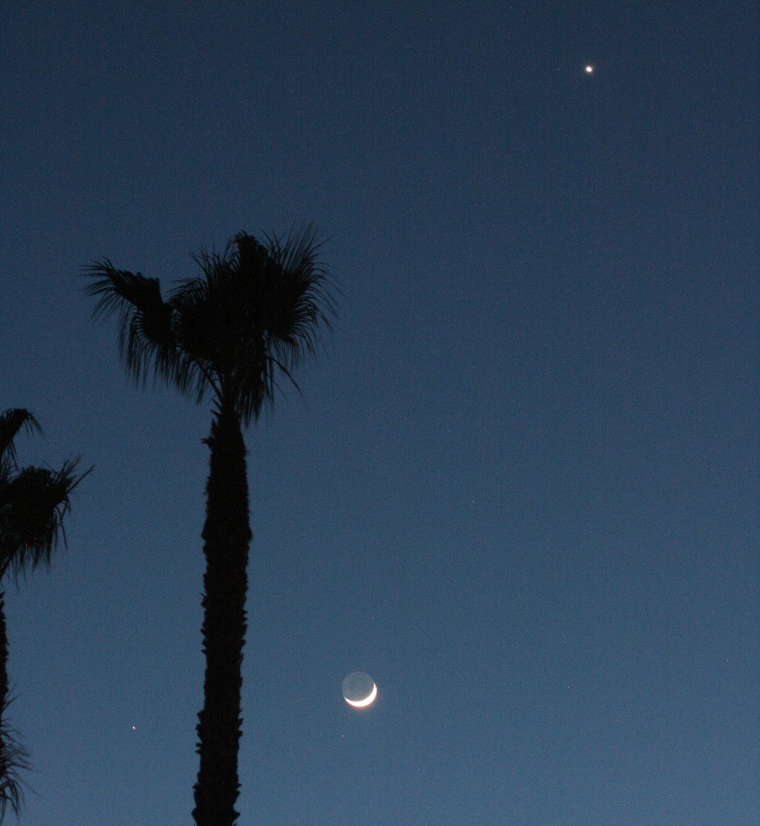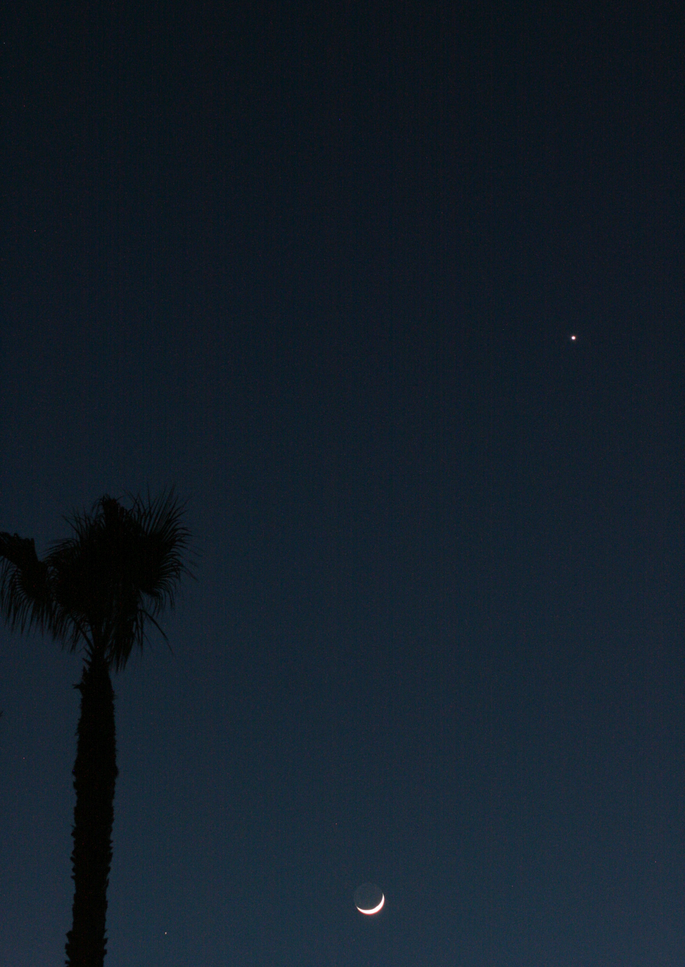 Even early after sunset, way before it’s dark, you’ll spot the moon in the blue sky. It’s almost ludicrous how bright Venus is as well. I spotted it in the blue sky just a few minutes after sunset, when it was till plenty bright enough to read outside.