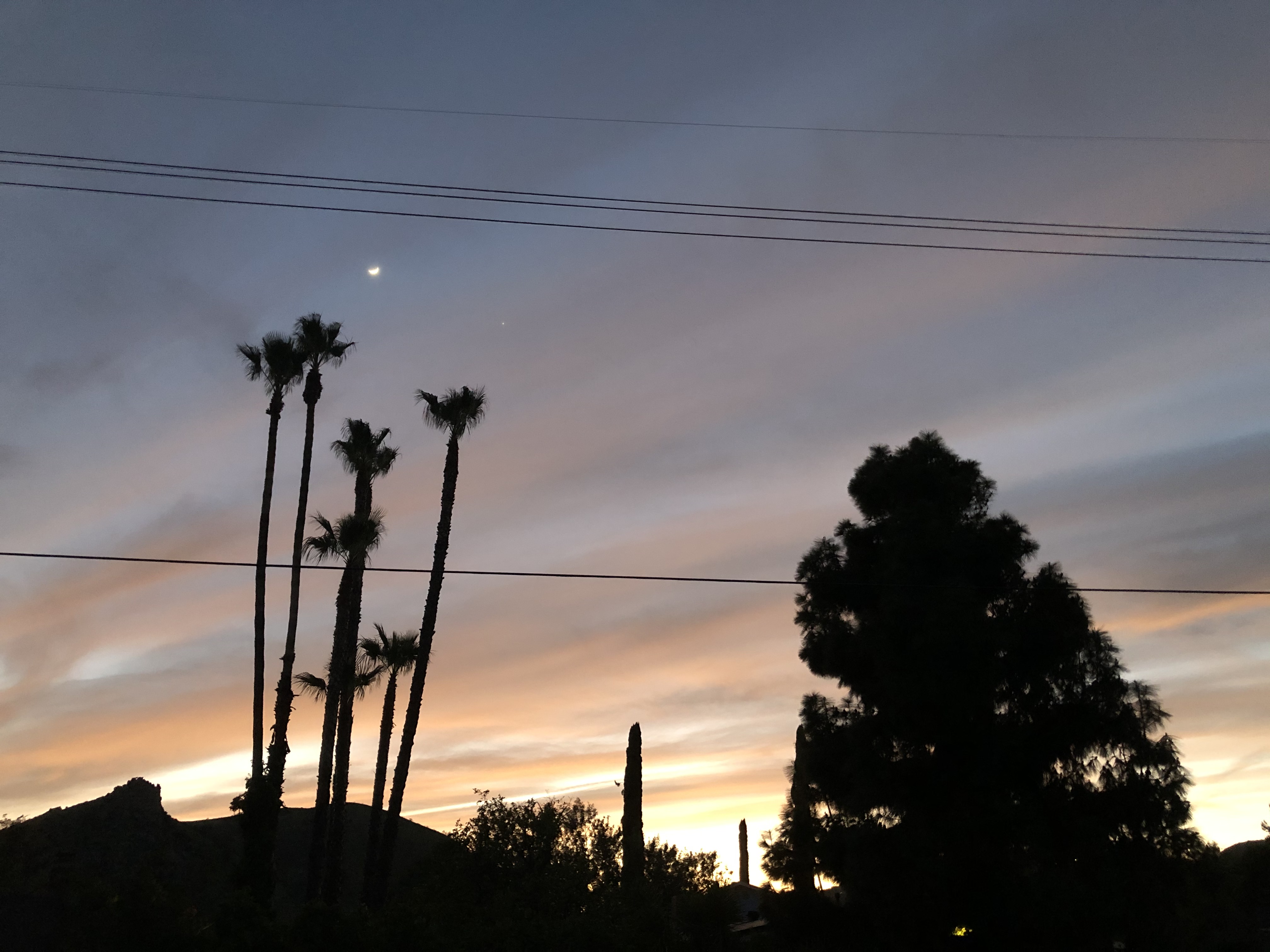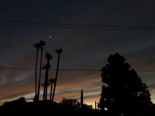 Tonight’s layers of clouds didn’t “partially obscure the conjunction of the crescent moon and Venus.” Nah!