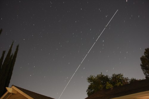 Setting behind the house off to the northeast. (Toward Salt Lake City at 17,500 mph.) Currently over Africa only 35 minutes after being over LA. Orbital mechanics, gotta love them!