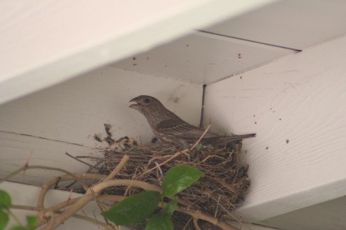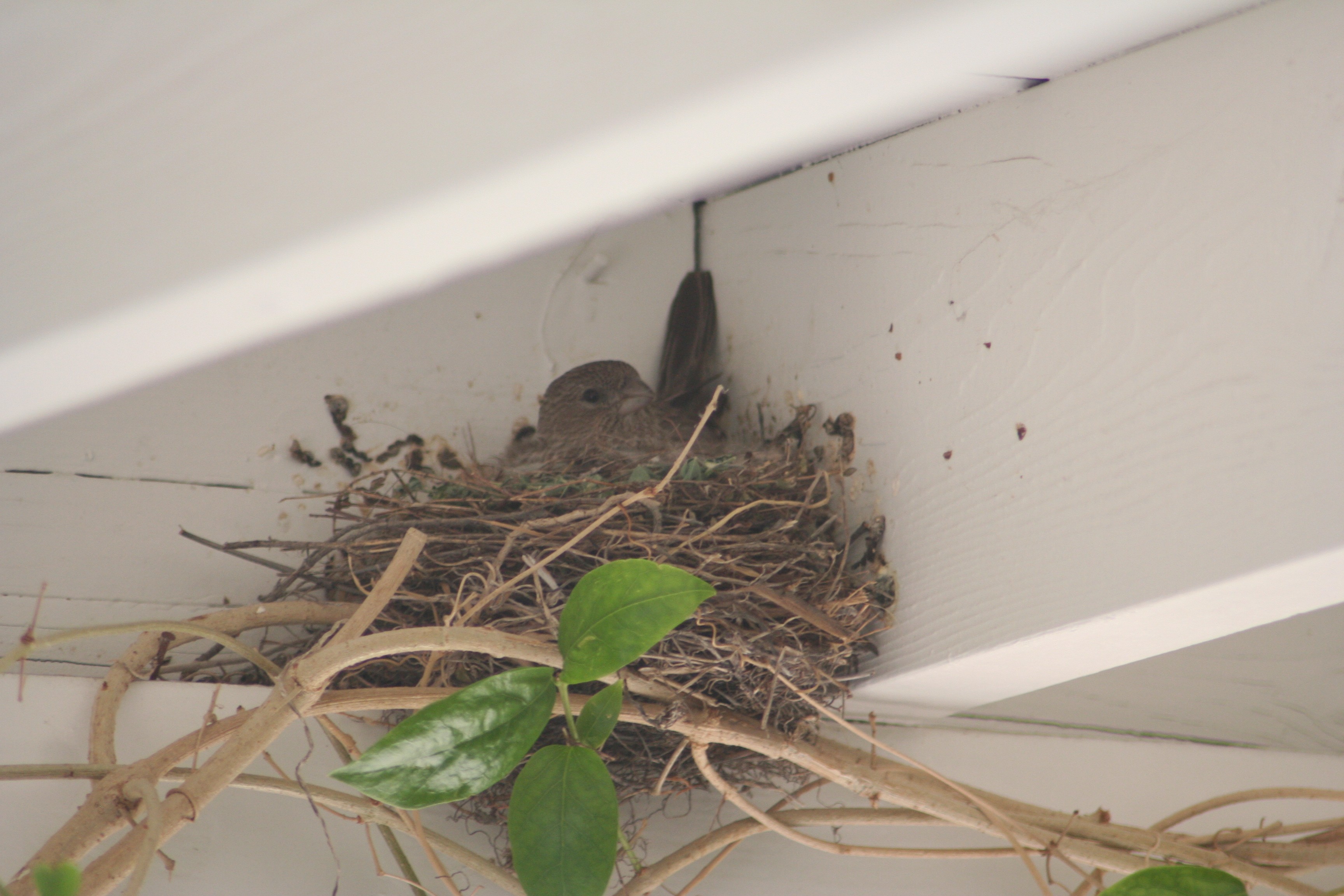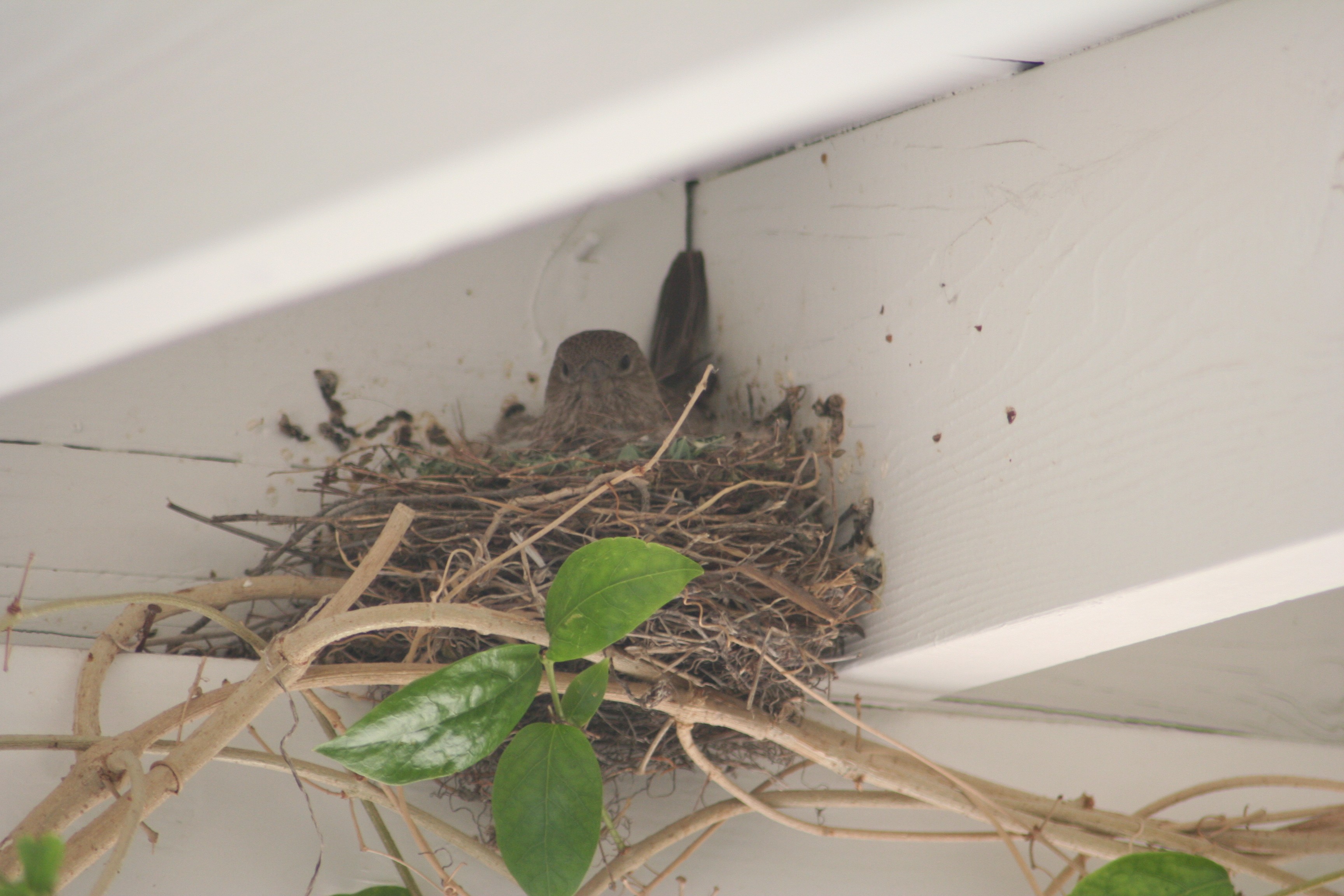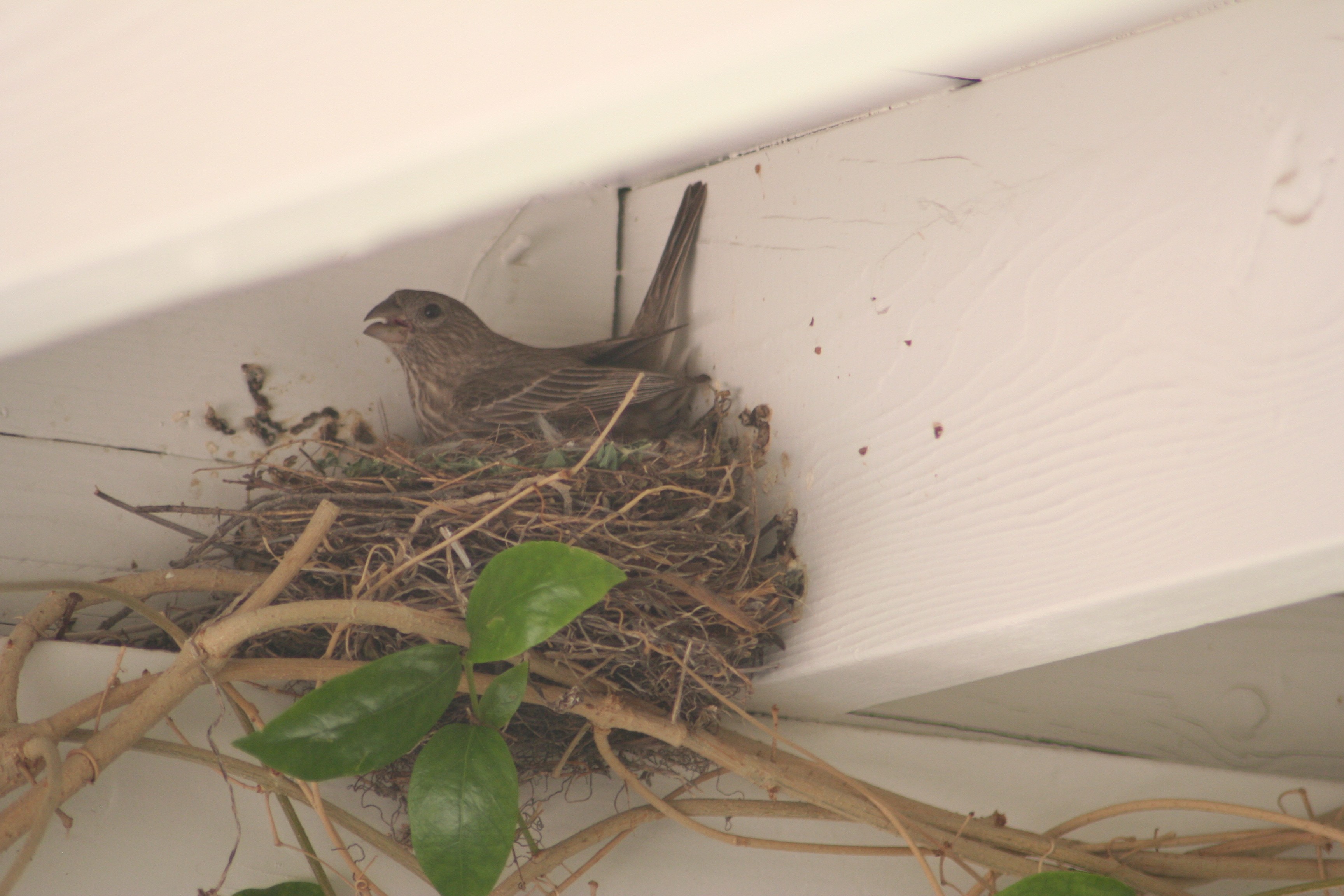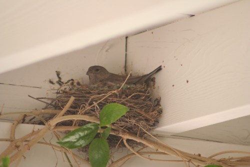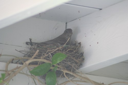 When it really gets warm (it got up to 84°F today) she raises way up and has her mouth open, presumably for cooling for both her and for the eggs underneath her.