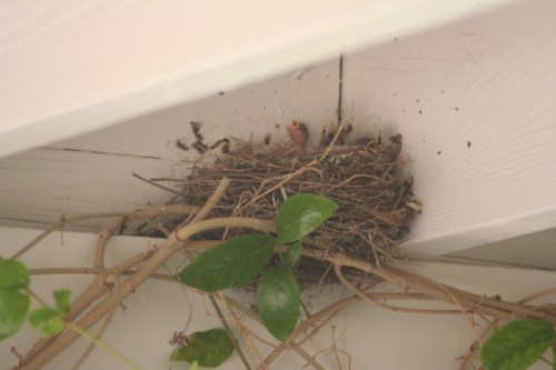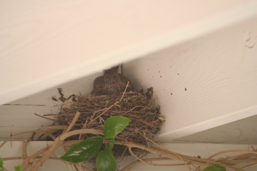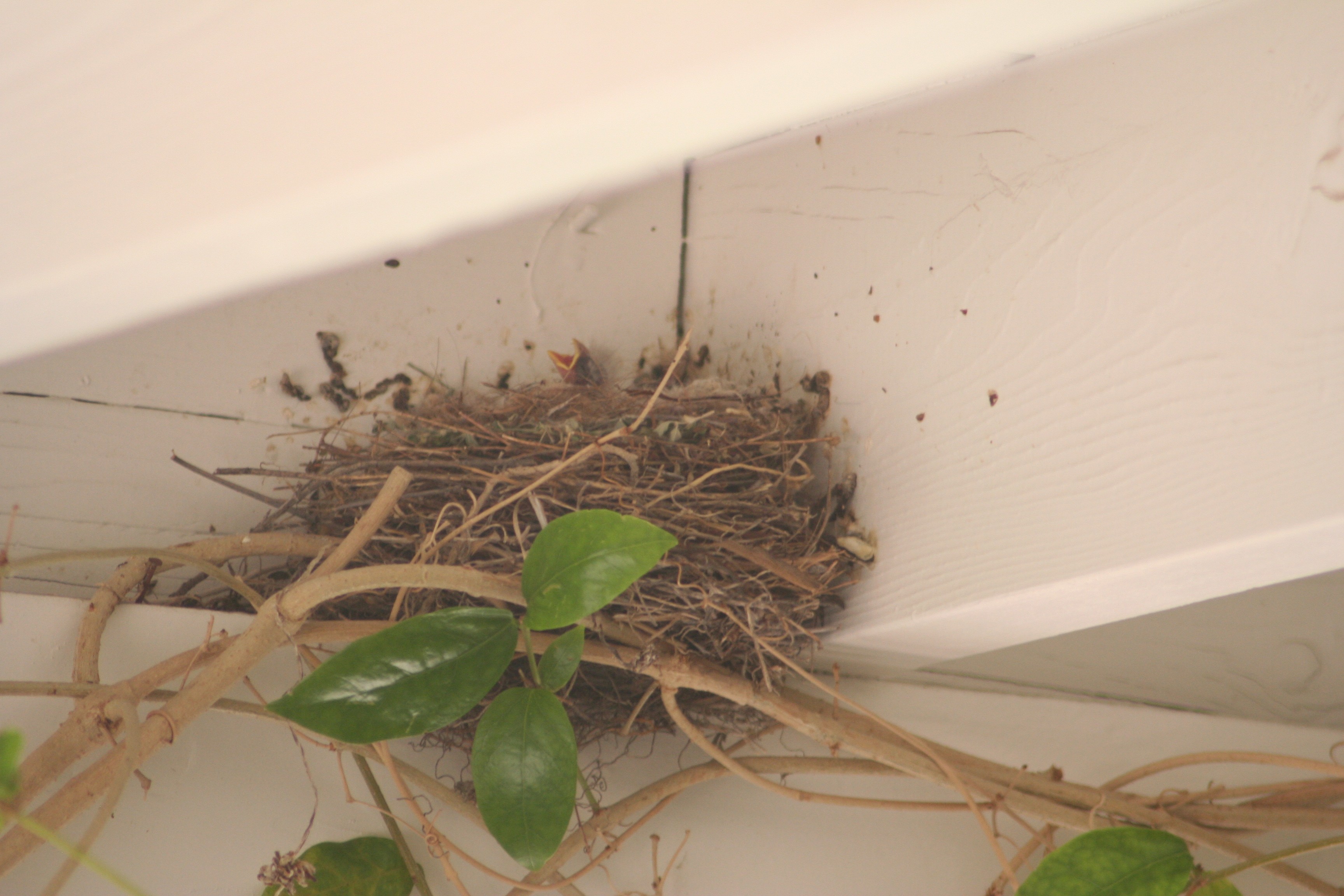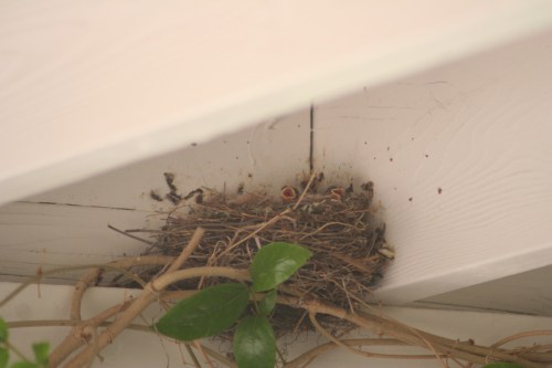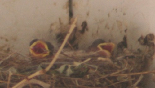 Today Mama was gone most of the day, but a couple of little grey heads attached to HUGE yellow (open) beaks kept popping up.