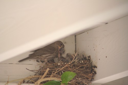 It’s a weird world these days. Hours and hours and hours and hours every day living and working virtually, staring at over a half-dozen screens and six keyboards. And then for the tiny bit of permitted reality, watching baby birds get fed, shoving each other out of the way to get at Mama Finch.