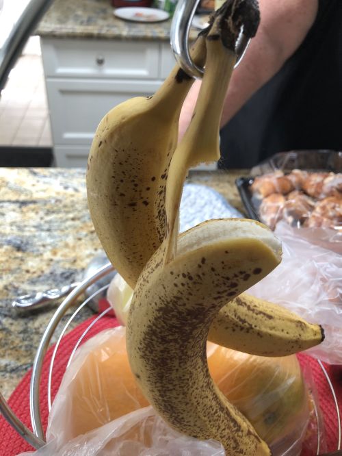 I don’t think that I’ve ever seen this before, yet we’ve been hanging bananas here above the fruit bowl for many decades. Yet twice in the last three weeks I’ve seen this behavior.