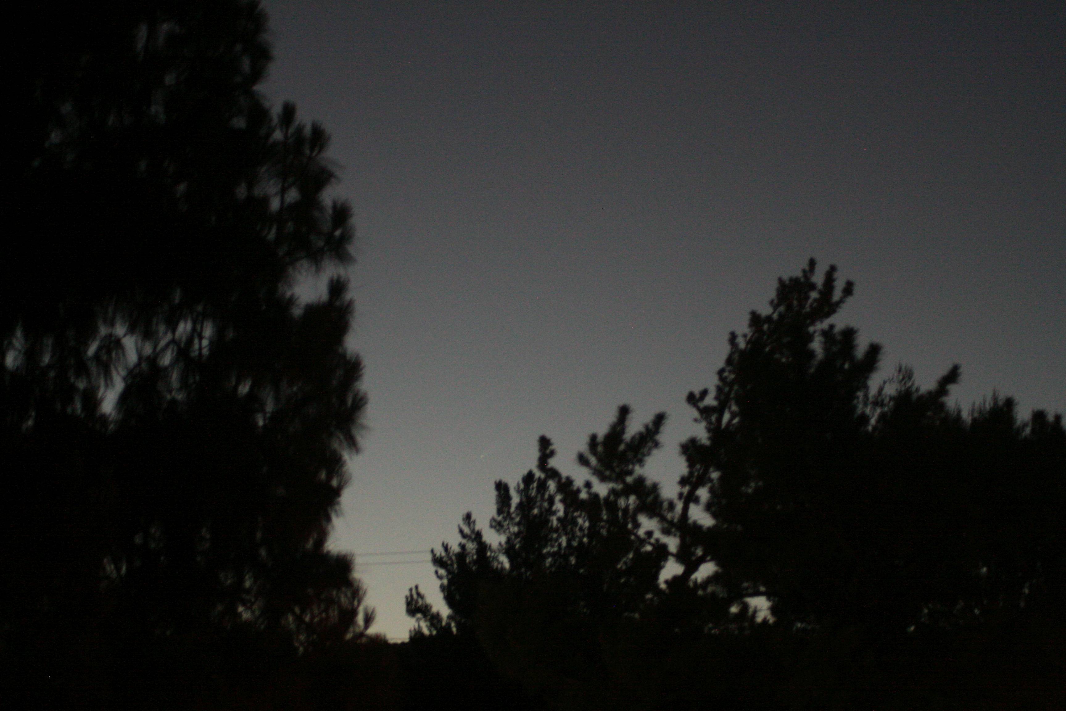 Well, don’t feel bad if you can’t see it, it’s pretty tough to see. Just a low contrast smudge, low down in the haze and coastal fog coming in from the coast, and almost wiped out by the light of the lingering dusk only an hour after sunset, still well into twilight.