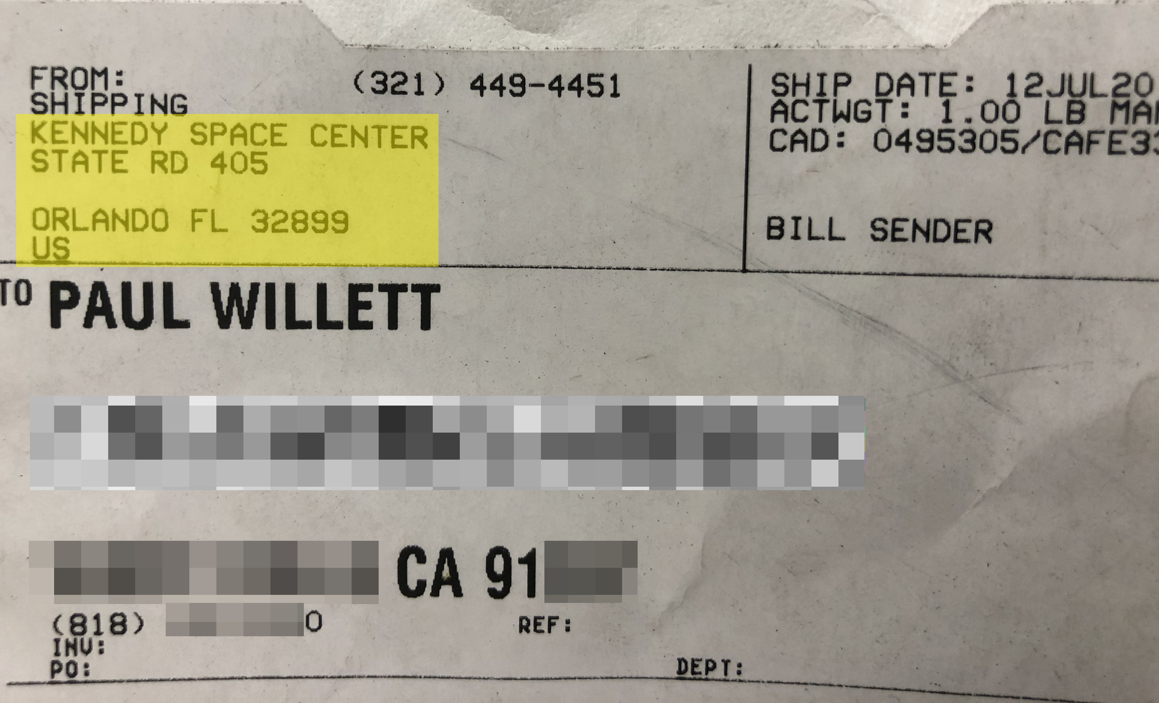 IT’S FROM KENNEDY SPACE CENTER!!! TO **ME**!!!