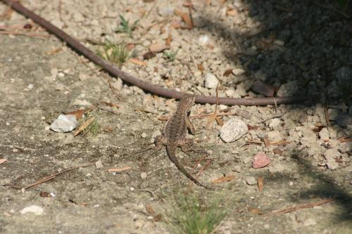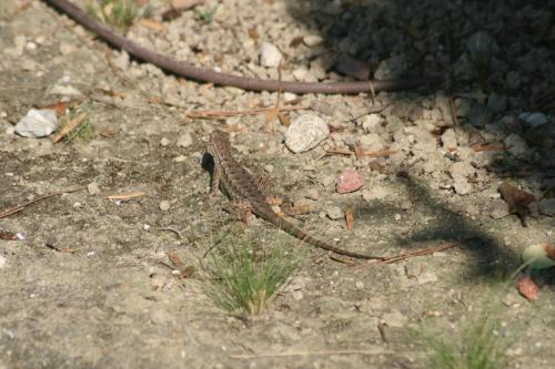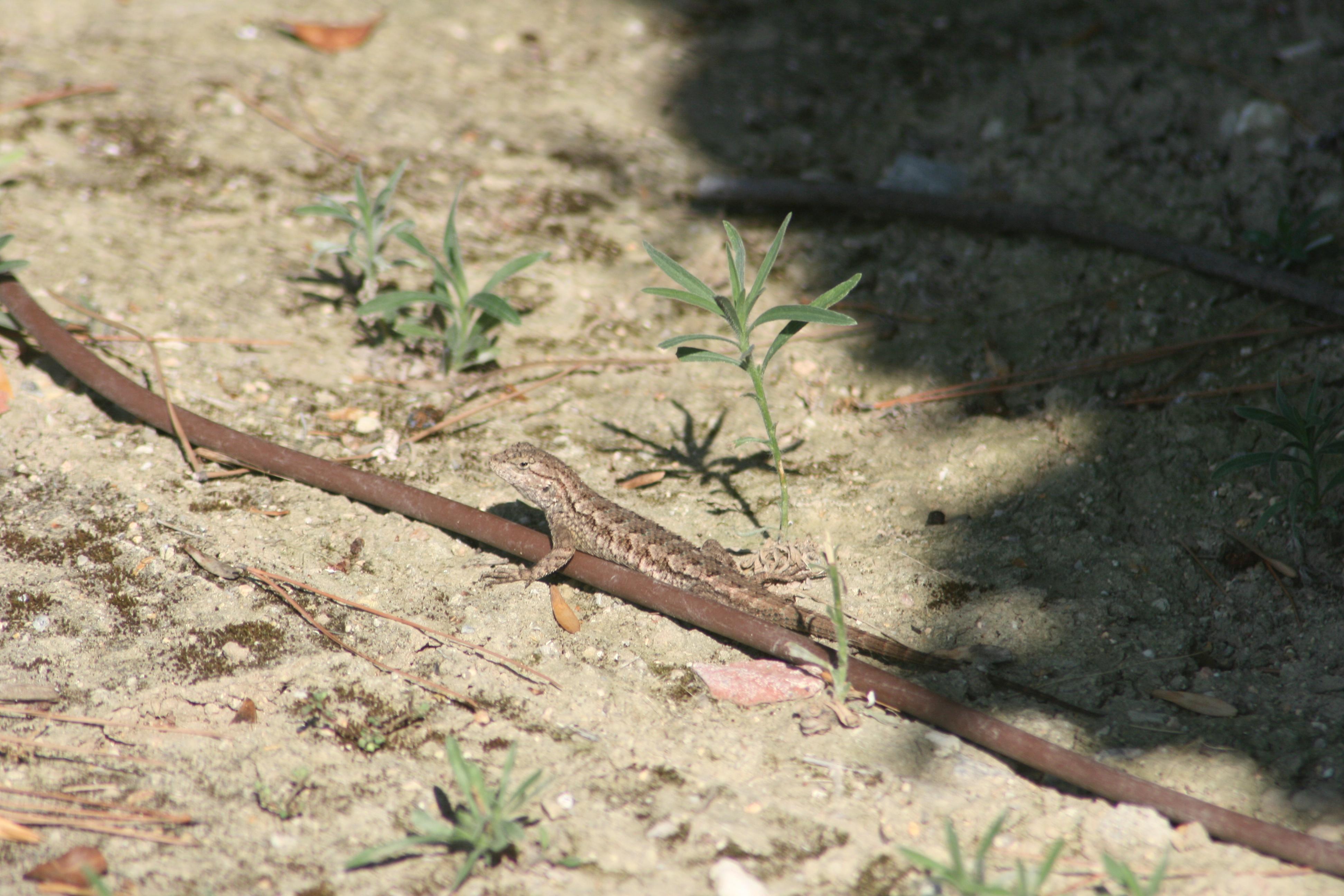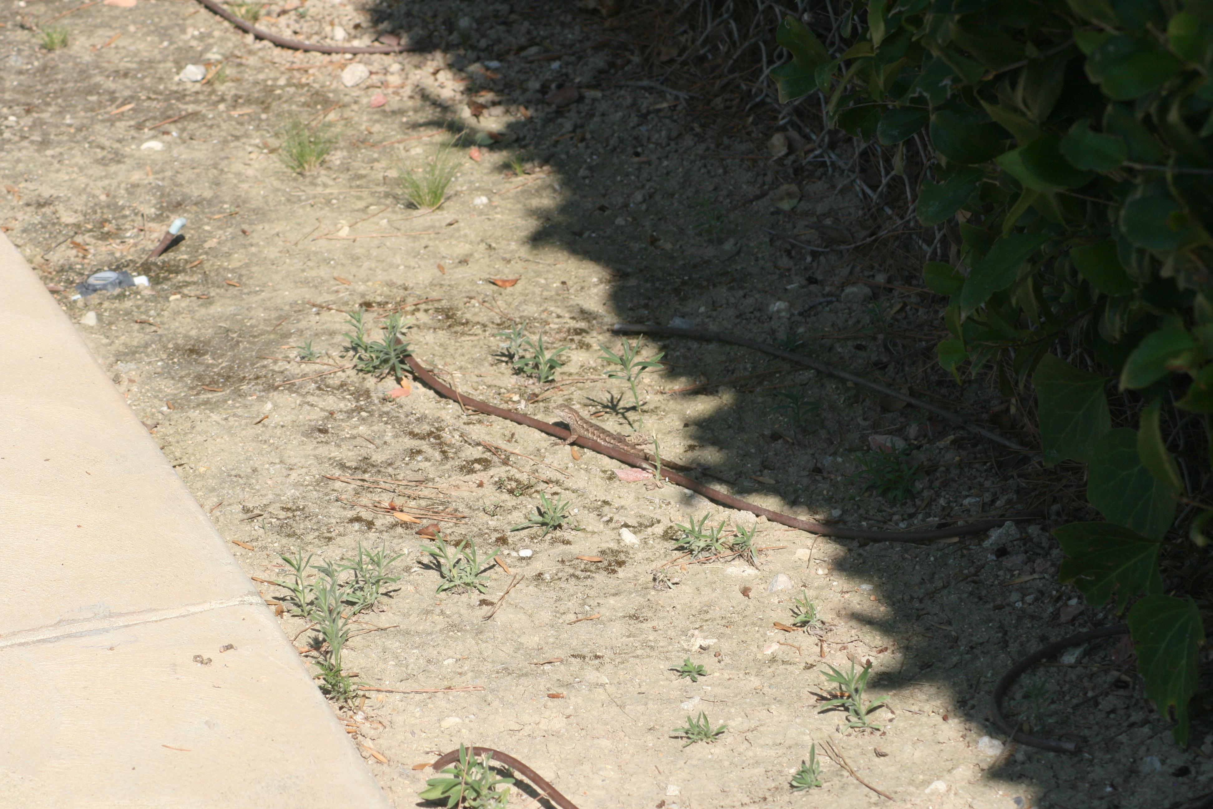 He’s not one of the small, baby lizards. I haven’t seen any of them in the back yard, they’re all out front by the driveway.