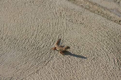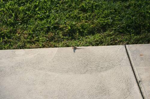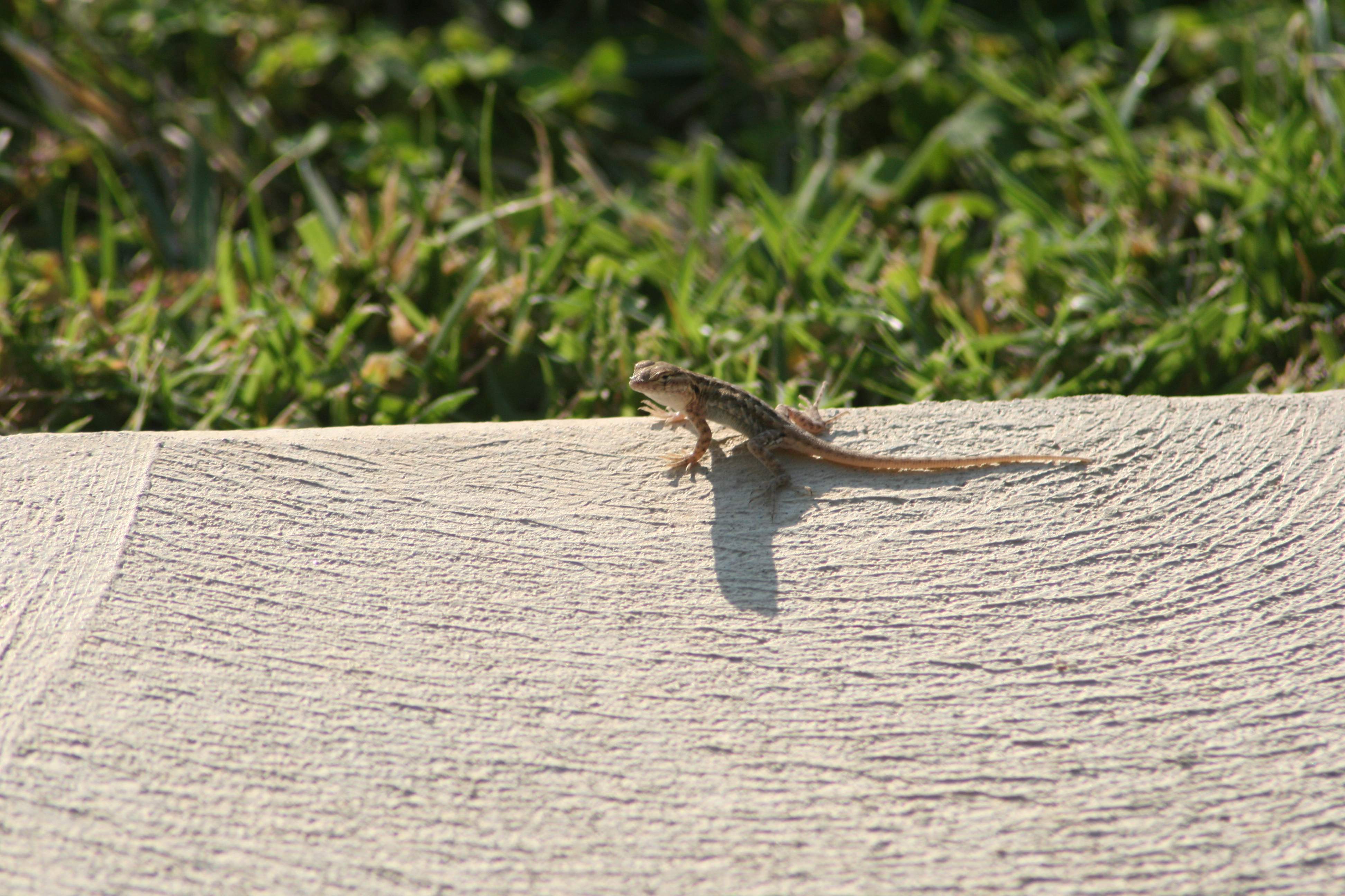 Probably a good move – I’ve seen the remnants of at least two of his siblings out there already. Between the crows, hawks, mockingbirds, and whatever omnivorous predators are on the prowl, there are slow lizards and there are old lizards, but there are no old, slow lizards.