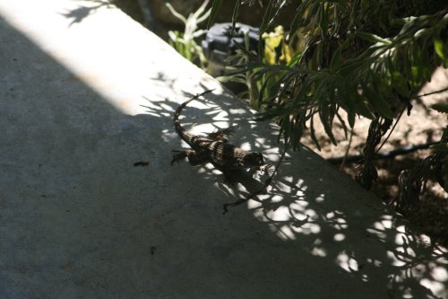 This close up the depth of field on the photo sucks, but I do love seeing the texture and spines on his scales where it is in focus, as well as those long, agile toes.
