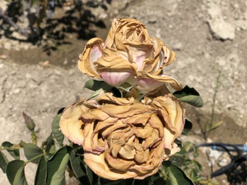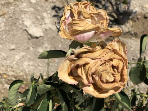 But a couple weeks ago, when it was 121° a couple miles from here and 117° here, I was out in the noonday sun (like an idiot, because… well, I’m an idiot) and noticed a couple of roses that had tried to bloom in the previous couple of days.