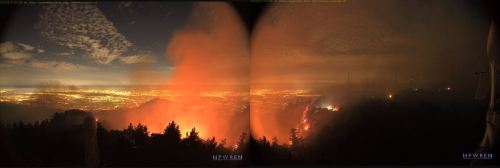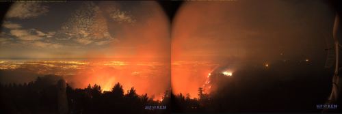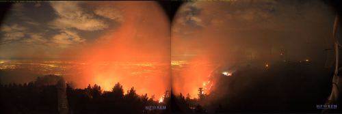But from the webcams on the observatory domes, it looks very close and very dangerous. (Photos below from the UC San Diego HPWREN network.)