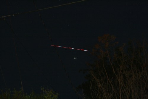 I’ve uploaded the whole thing, warts and all, no editing. There were times when I was taking pictures with the DSLR and you get to listen to me blather on with nothing more to look at than the back of the camera and the neighbors’ dark yards. There was a time when someone from down the street wandered by and I offered them a look, so I didn’t pay much attention to what was going on in “the show.” You’ll hear me answering questions that came up on the chat and talking to old high school friends, family members, and friends from work.