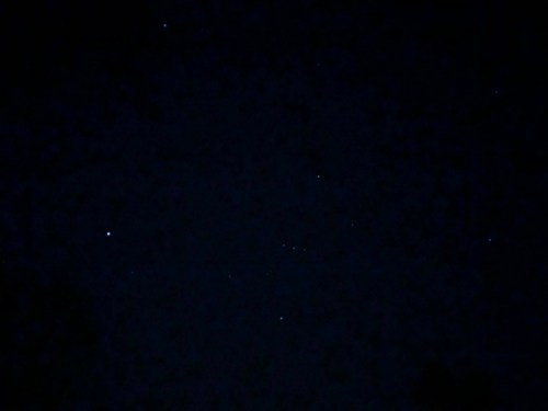I was doing a lap around the backyard in the dark (my watch had bitched at me about sitting too long, and it was correct) and I was looking up at Orion and Sirius and Aldebaran. It was clear, the moon isn’t up yet, they were gorgeous – as always. I thought about going in and getting my tripod and good camera and setting things up, but I’ve got deadlines to meet and I needed to get back inside…
