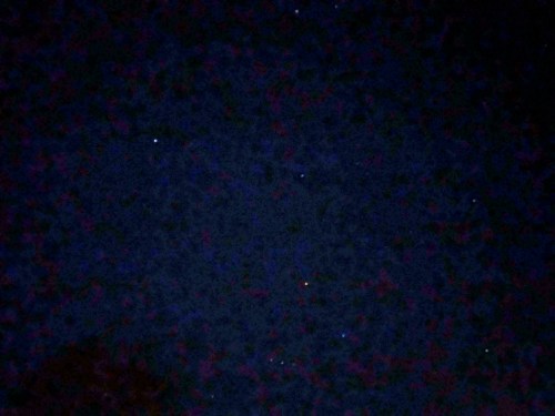 It turns out that answer is, “Yes – and no, but mostly no.” The biggest problem is getting it the camera to focus, it doesn’t have anything solid to grab ahold of. But if you can lock the focus, you can get something that at least shows Sirius (middle right), the four “feet and shoulder” stars of Orion as well as the “belt” stars, Aldebaran on the right, and Procyon near the top. That’s something like six of the dozen brightest stars in the Northern Hemisphere (one of the reasons the winter sky is so easy to find your way around, and so spectacular looking) so it’s cool that they DO register, but like the dancing bear, it’s not that they do it well, but that they do it at all that’s impressive.