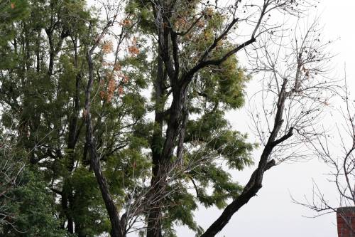 Can you see her right in the middle of this picture, in this dead-ish tree in the neighbor’s yard?