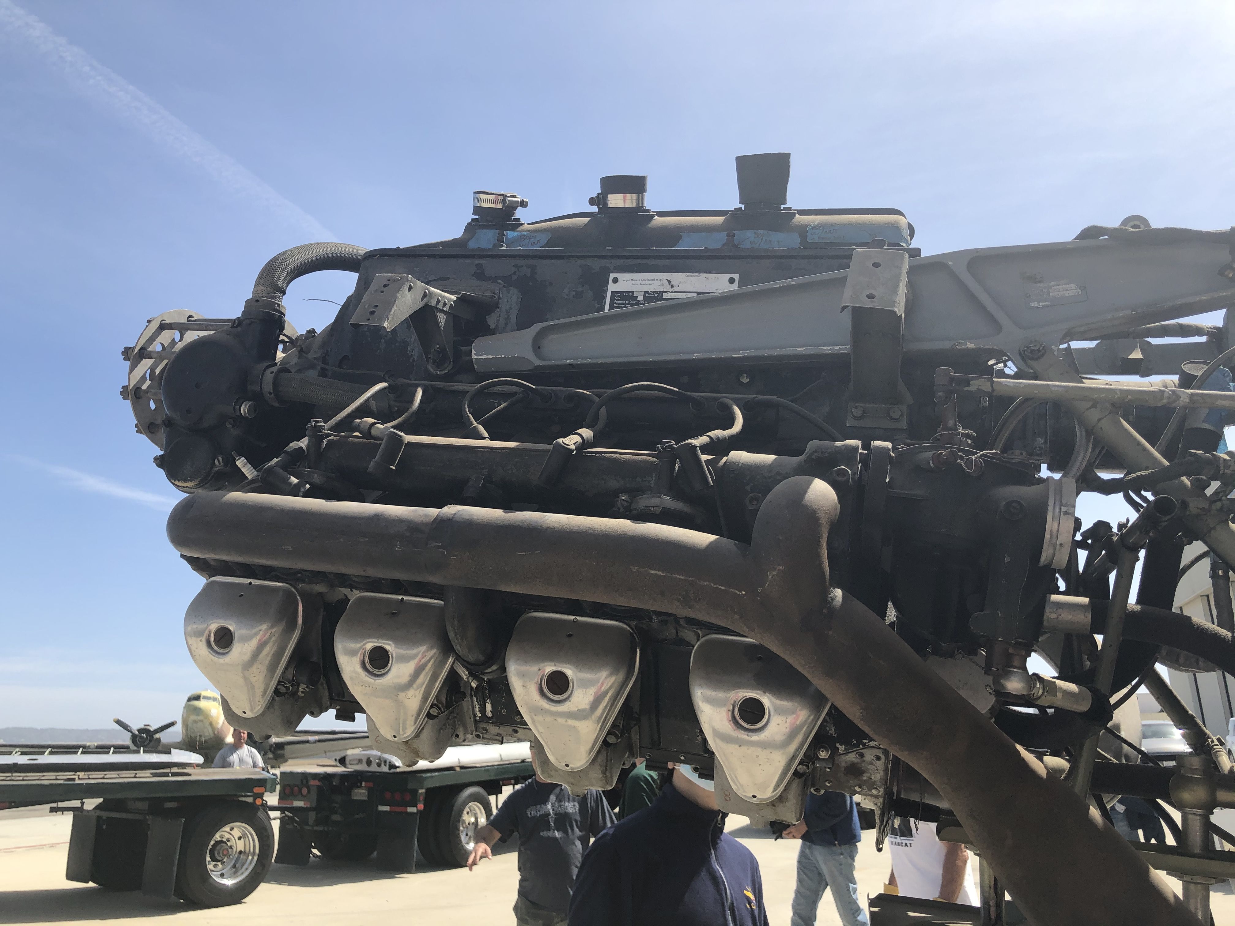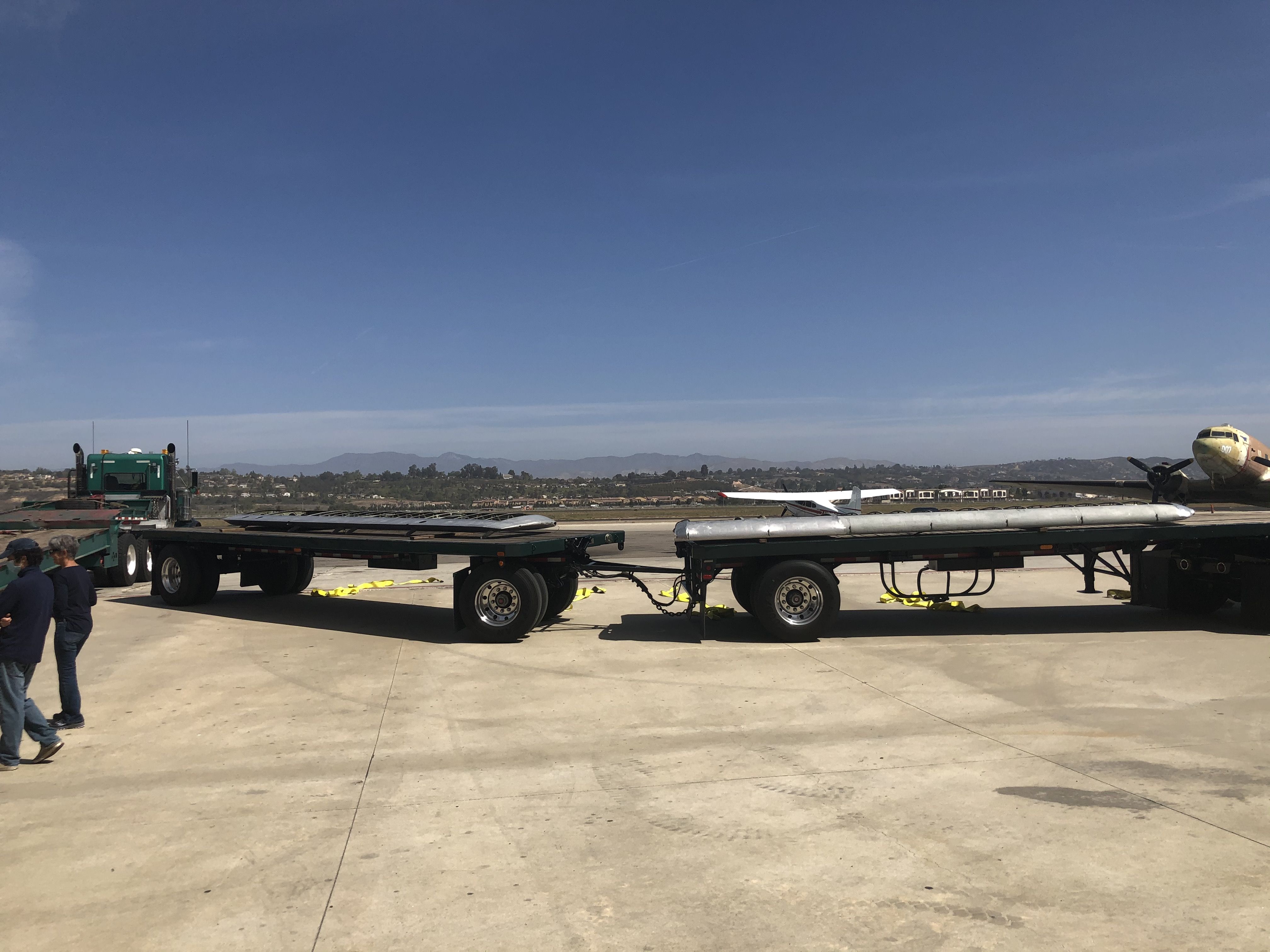 This one was partially disassembled for transport to us from San Bernardino County, with the fuselage on one truck, the wings on another, and the propeller, horizontal stabilizer and other parts coming in separately.