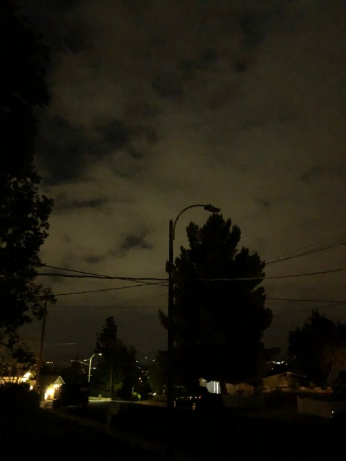 Except that, OF COURSE, every night since it went out has been cloudy and dark and it’s a big deal to kinda, sorta, maybe see the moon poking through the holes.