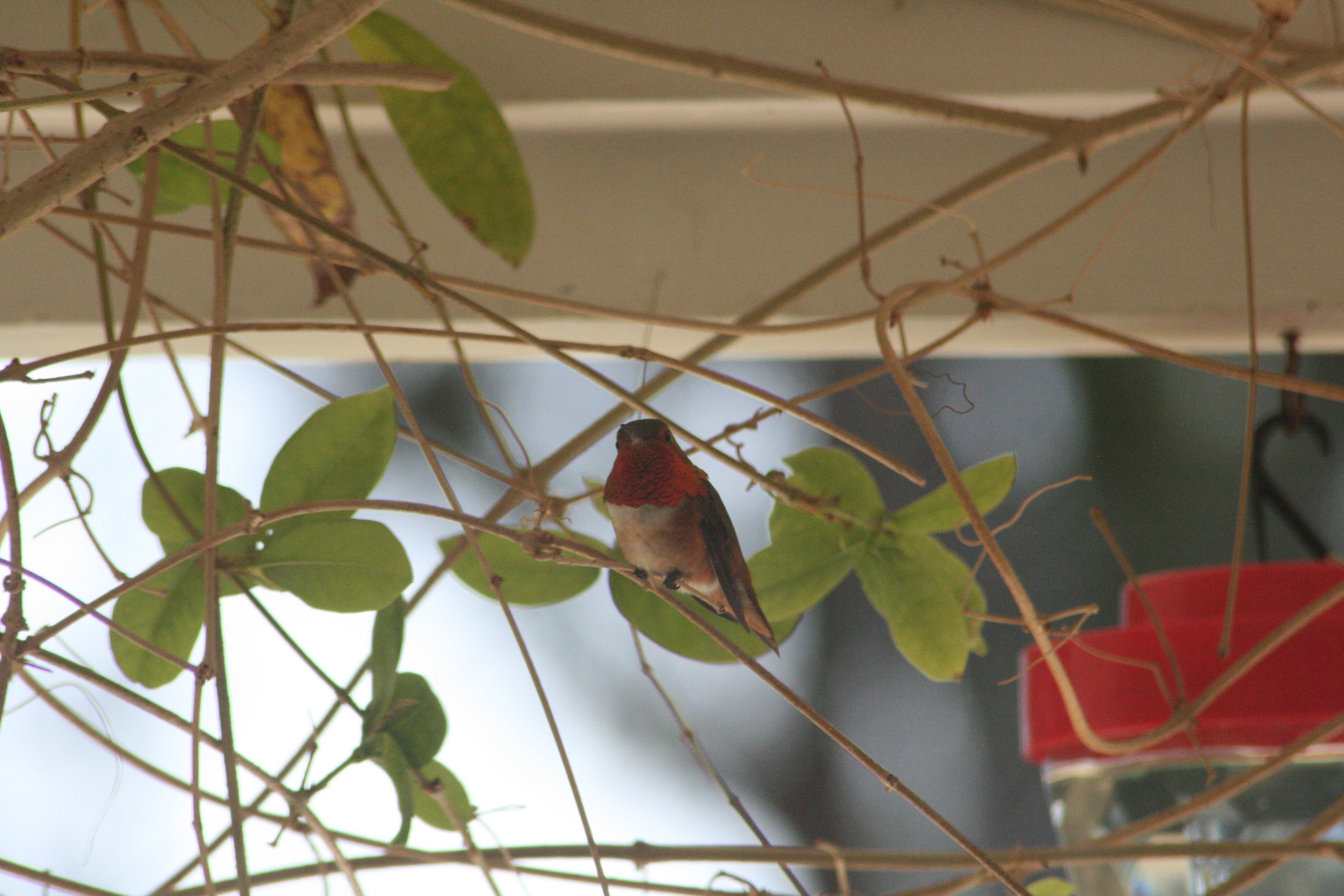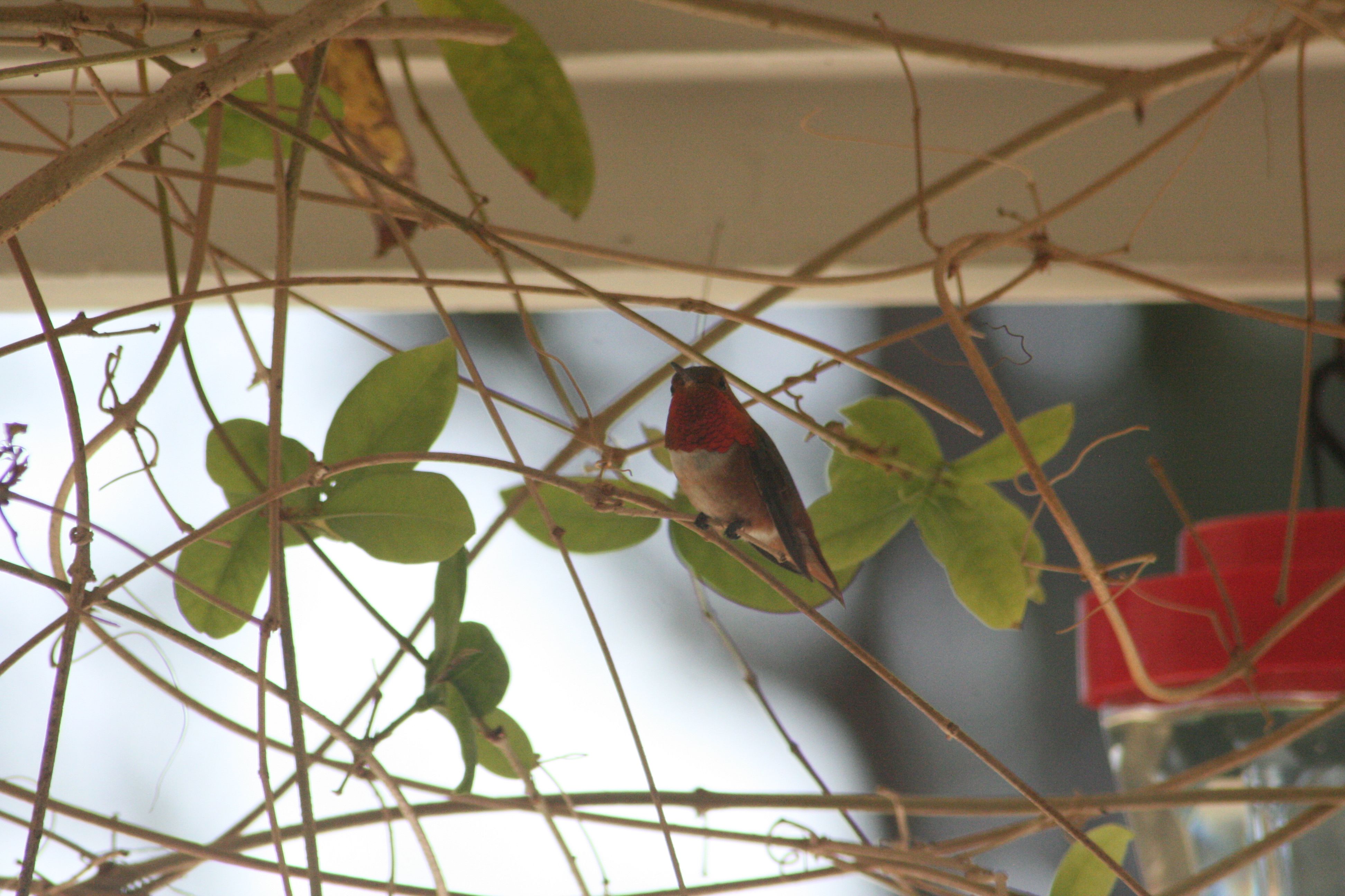 I finally got a good look at this guy today and my first thought was “ruby throated hummingbird” because I know I’ve heard of them and it’s a widespread species. Then I found out that they’re rarely seen west of the Mississippi and never on the West Coast.