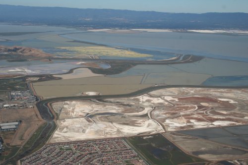 On final approach to Oakland, off to your left there is San Francisco Bay and the massive salt ponds, side by side with housing tracts packing folks in like sardines.