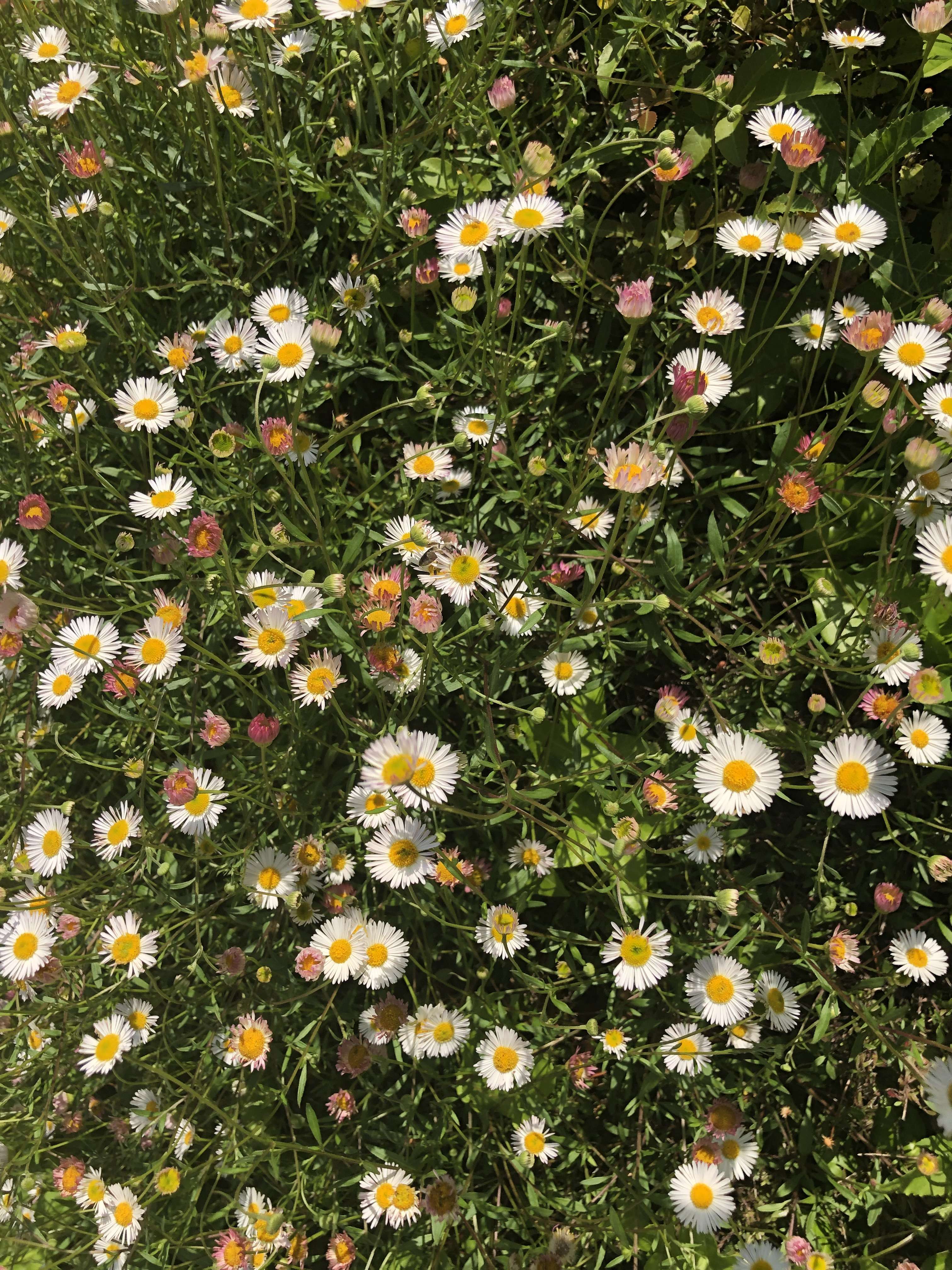 I don’t know what sort of flowers these are, although I might guess that the white and yellow ones are some sort of daisy? I don’t know about the smaller reddish and yellow ones.