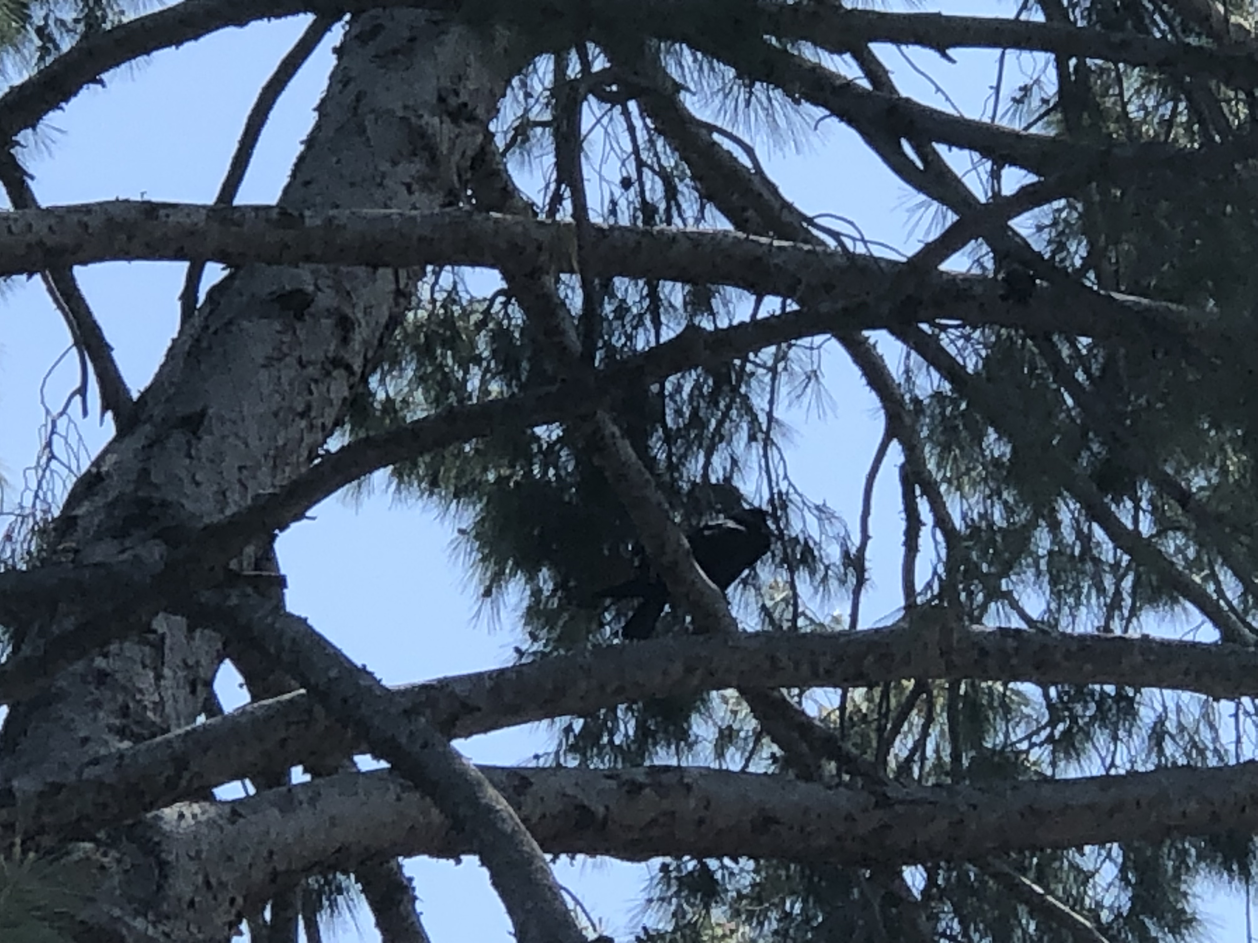 He was probably 40-50 feet overhead and just sounding off in all of his glory. Of course, so were the wind, the lawnmowers (tomorrow is trash day, so most of the gardeners are out in front of it), the motorcycles, the planes overhead…