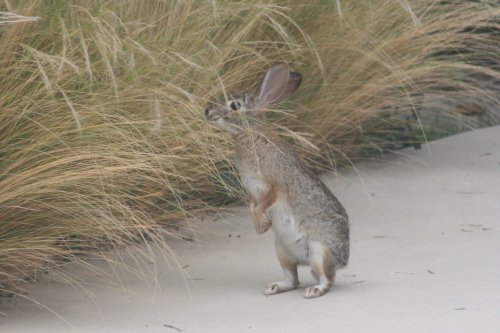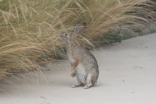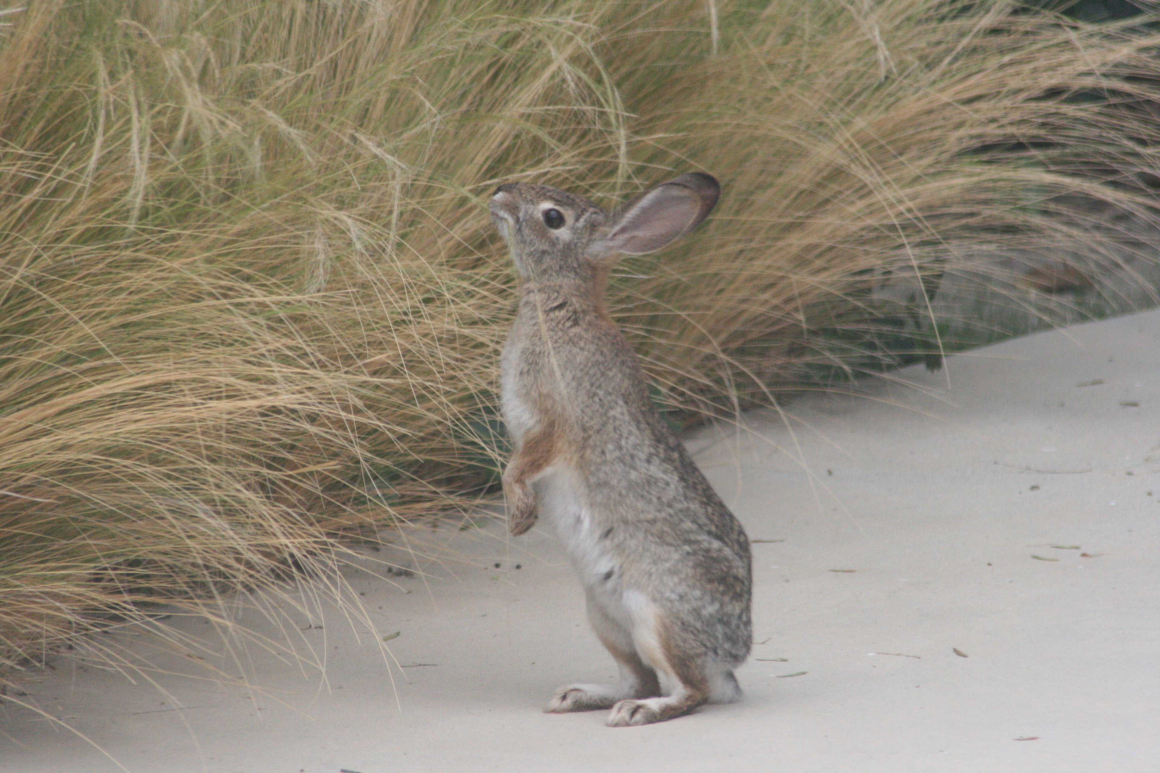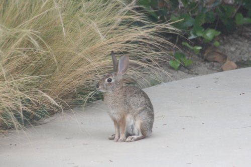 I caught this Leporidiaeic friend chomping away on the tall, sweet grass at the side of the yard. We see them in both the front and the back yard daily, but they’re usually eating the regular green, lawn grass.